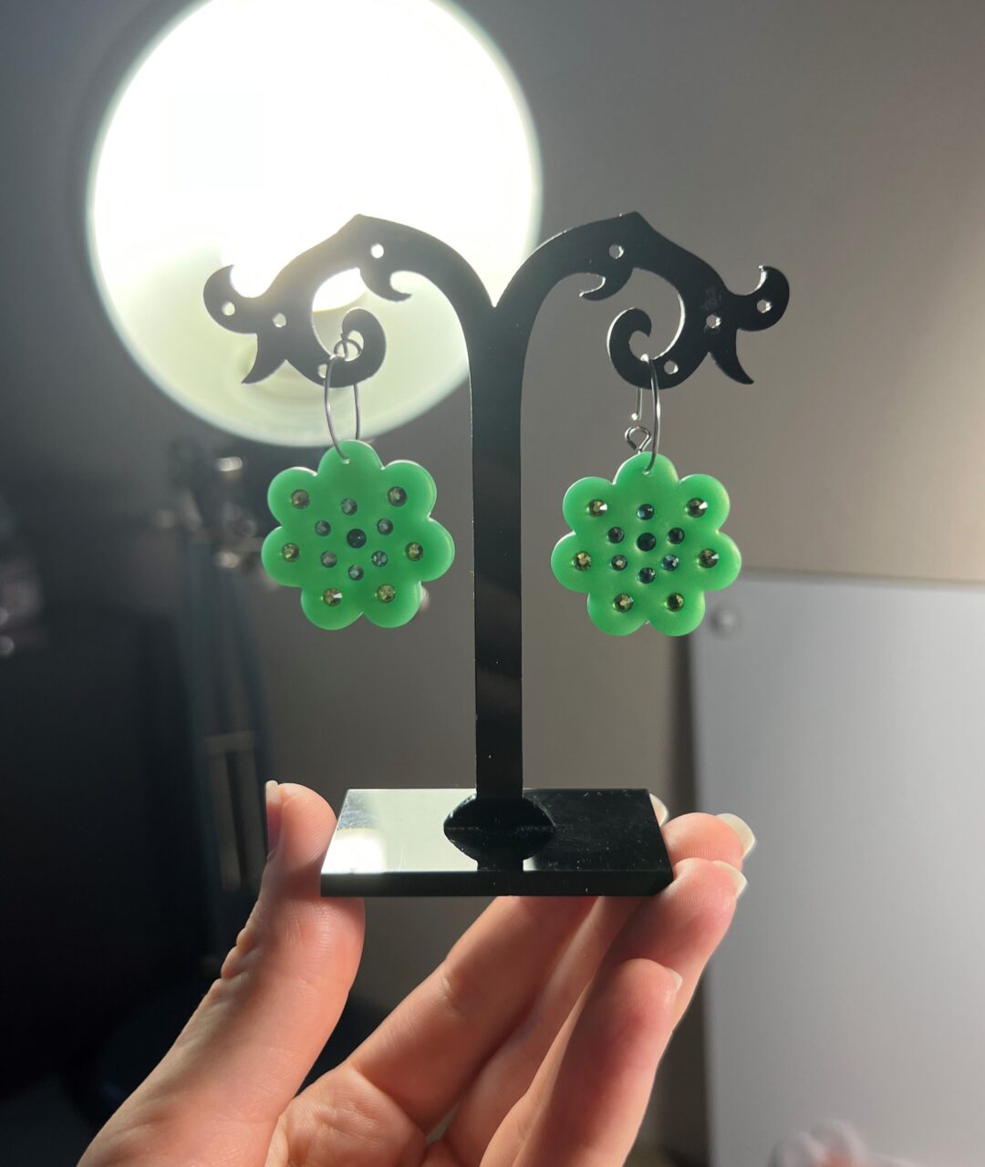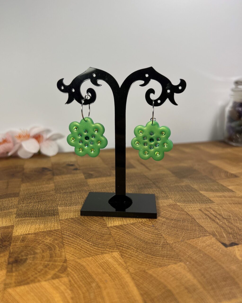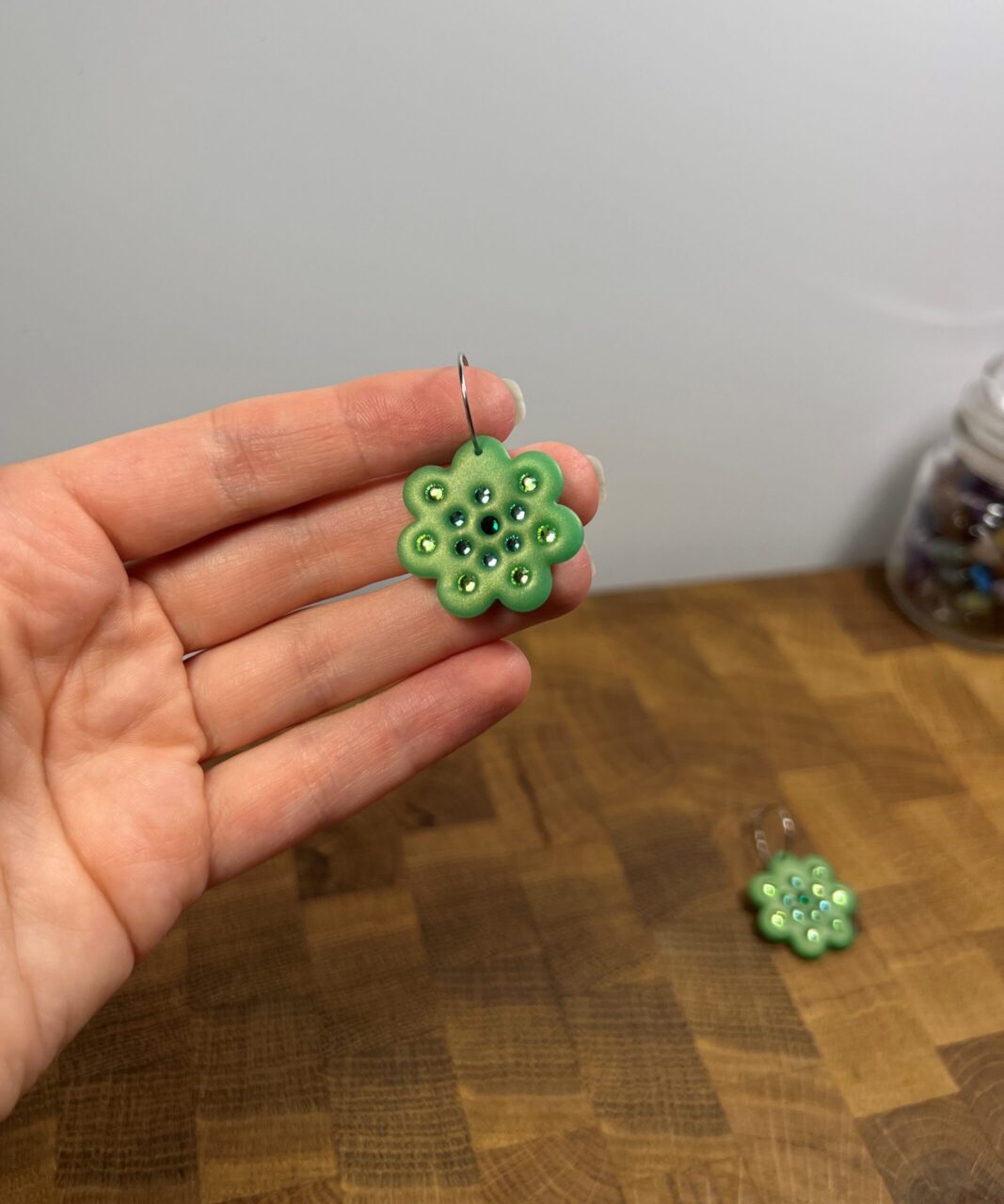 Ručně vyrobené polymerové náušnice.