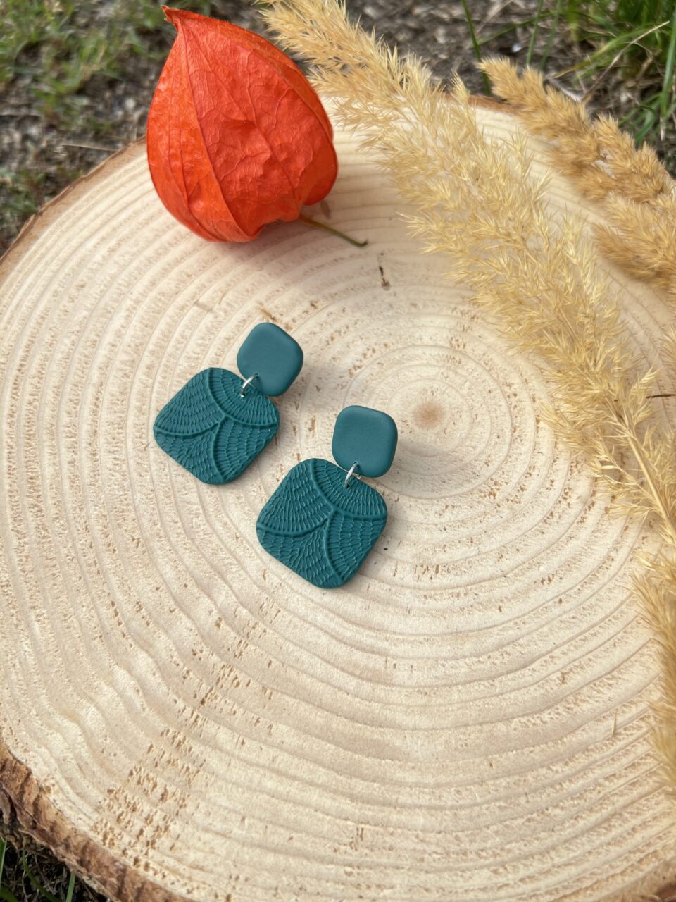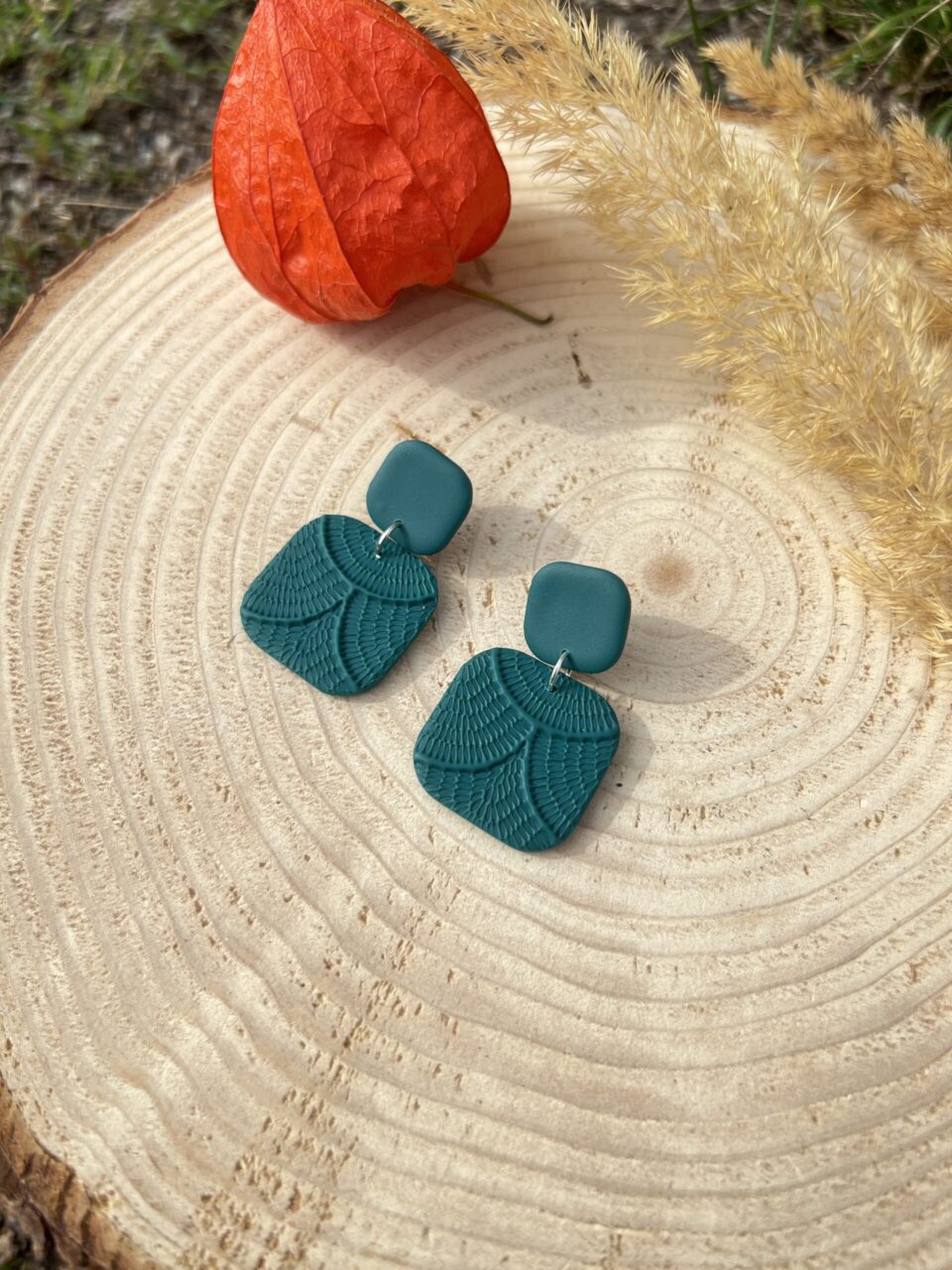 Ručně vyrobené polymerové náušnice.