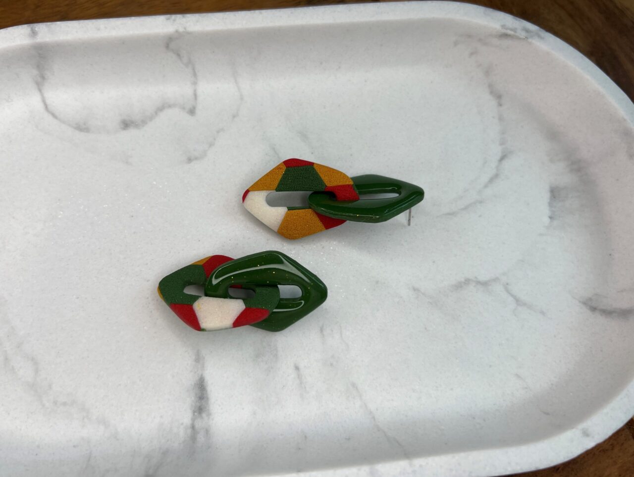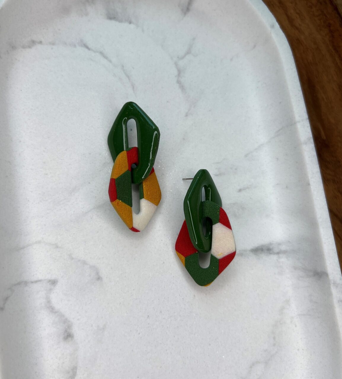 Ručně vyrobené polymerové náušnice.