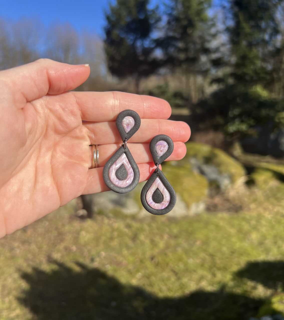 Ručně vyrobené polymerové náušnice.