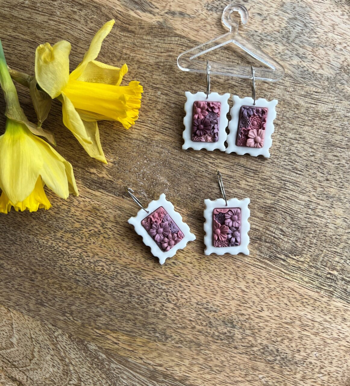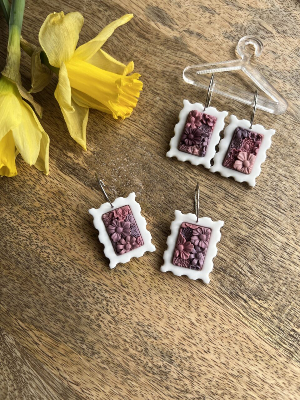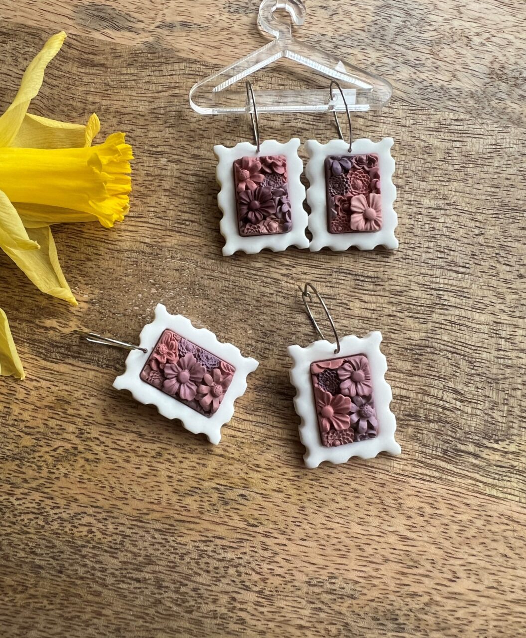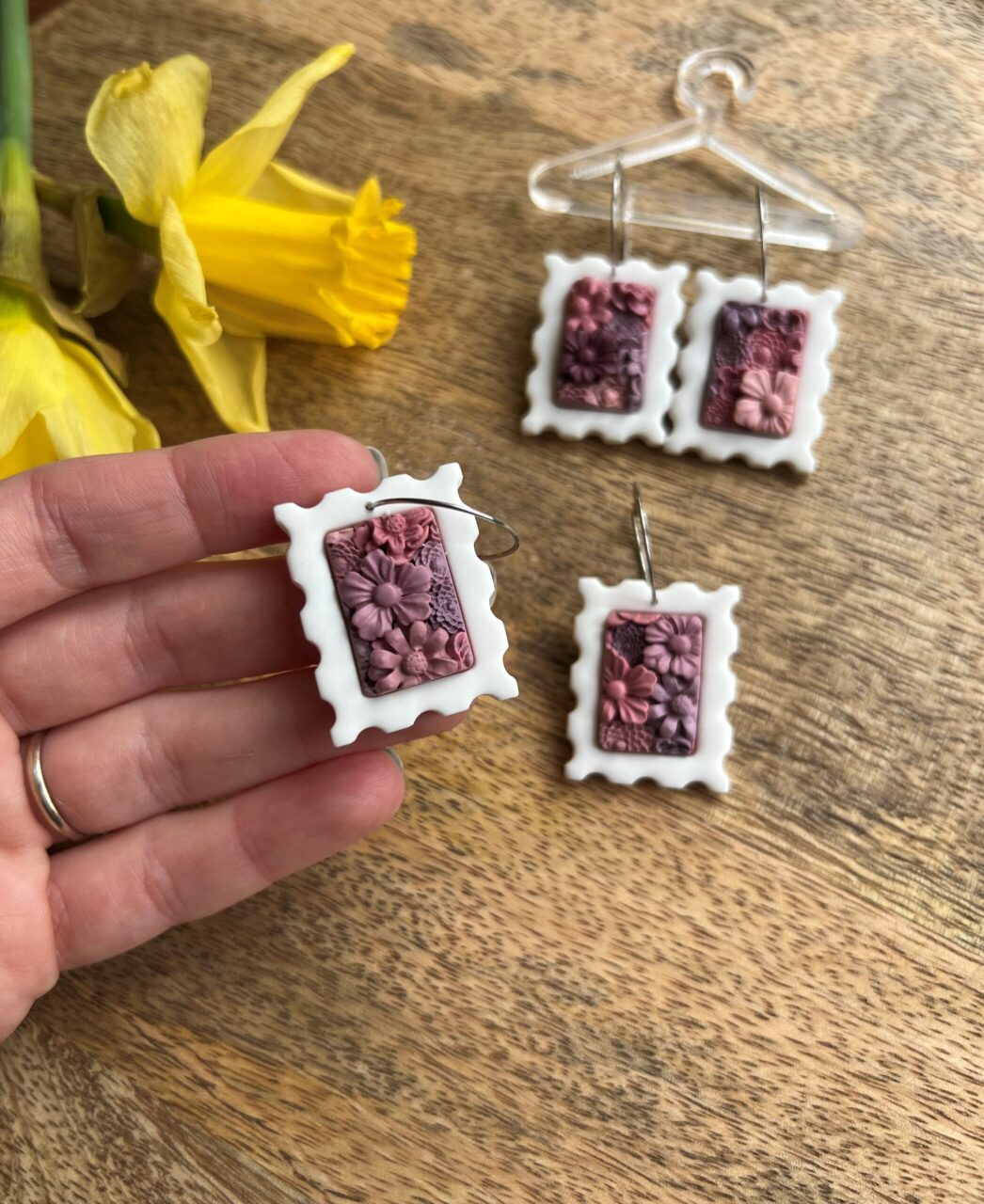 Ručně vyrobené polymerové náušnice.