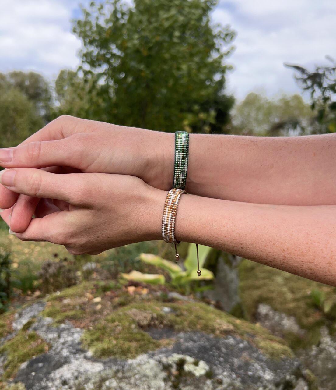Jedná se o rokajlové korálky japonské výroby vyznačující se vysokou kvalitou, leskem a tvarovou přesností. Náramek je šitý kvalitní nilovou nití.
