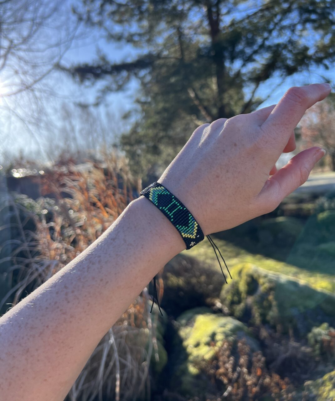Jedná se o rokajlové korálky japonské výroby vyznačující se vysokou kvalitou, leskem a tvarovou přesností. Náramek je šitý kvalitní nilovou nití.