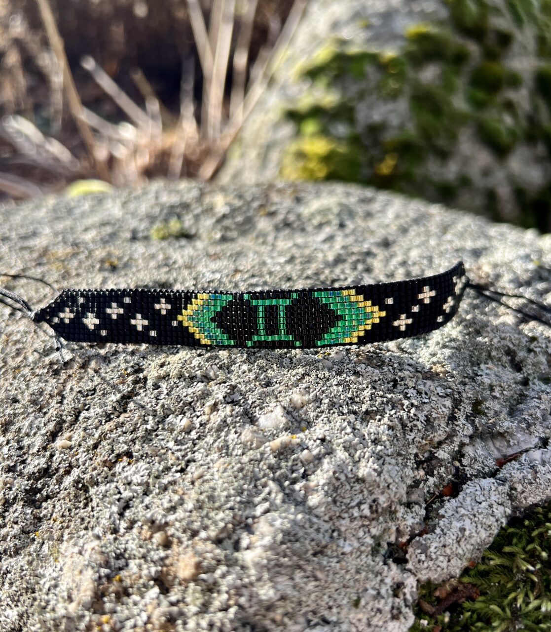 Jedná se o rokajlové korálky japonské výroby vyznačující se vysokou kvalitou, leskem a tvarovou přesností. Náramek je šitý kvalitní nilovou nití.