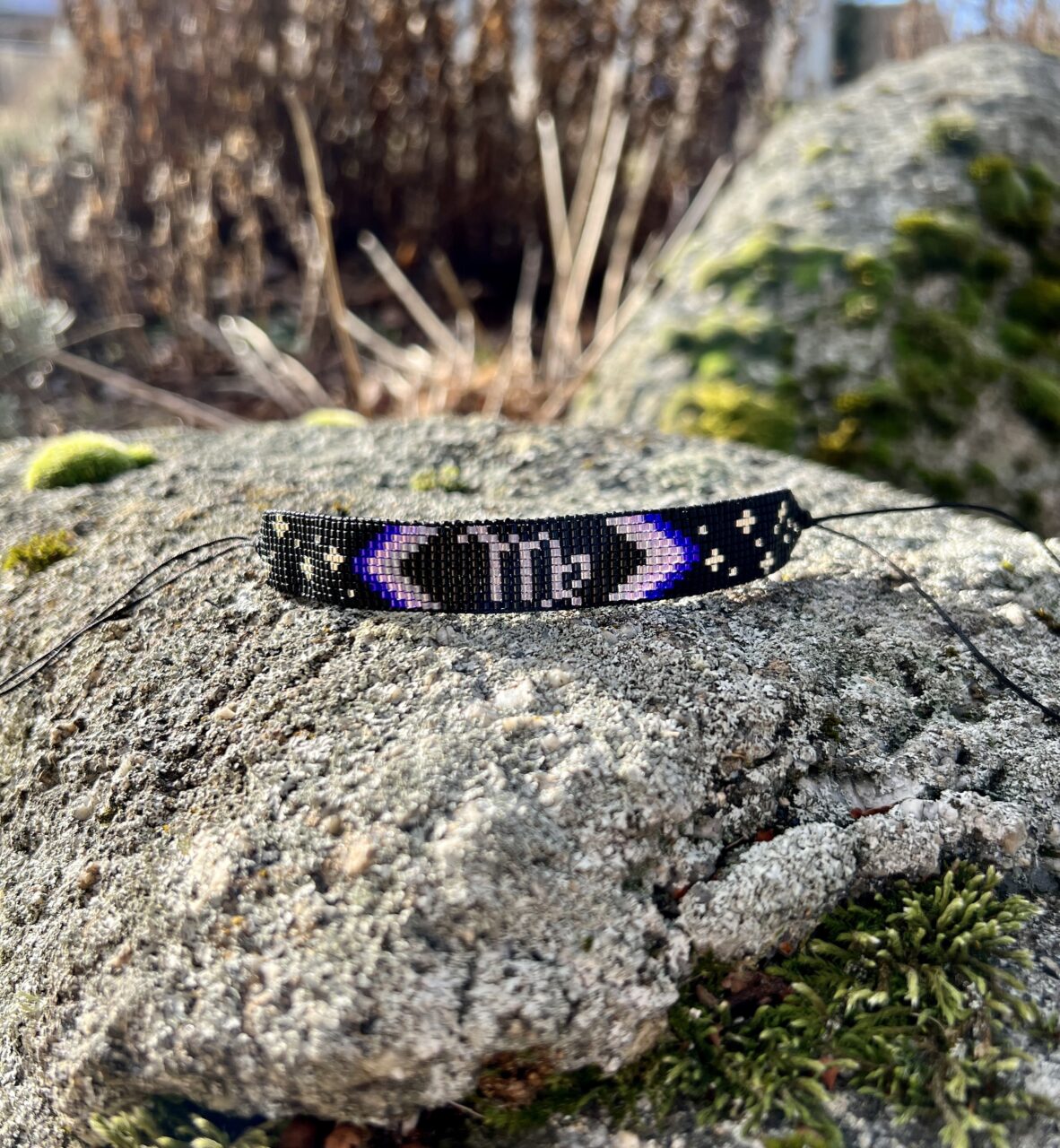 Náramek šití pomocí korálků Miyuki. Celková délka 15,5 cm, možno prodloužit díky posouvacímu zapínání.