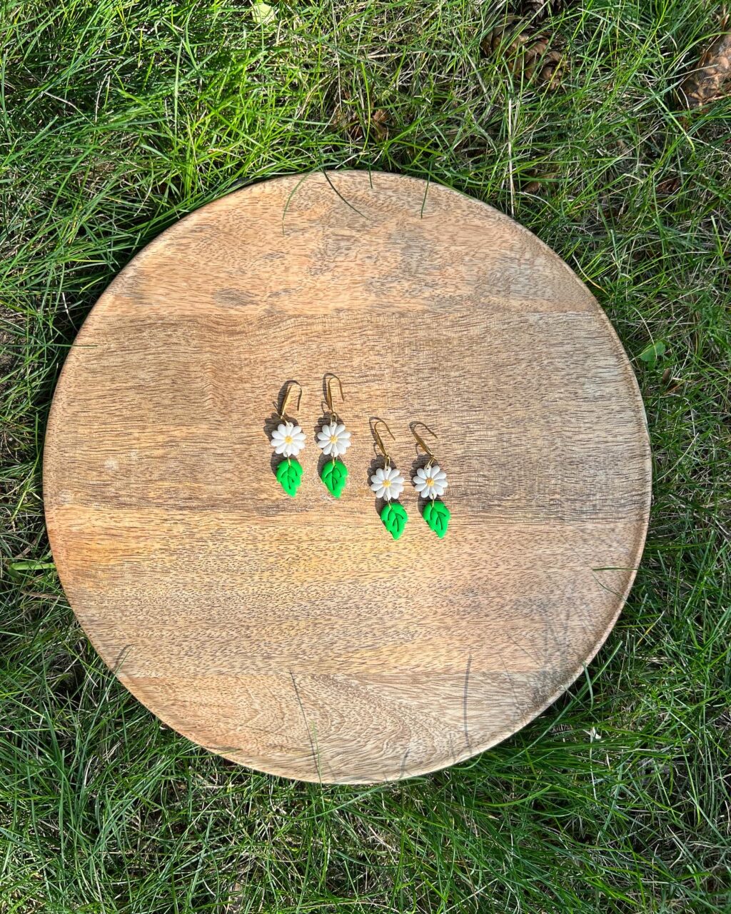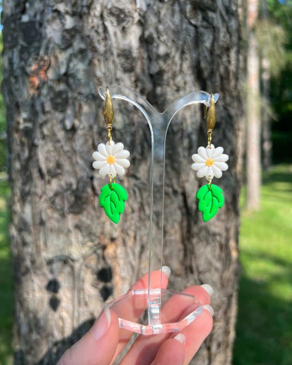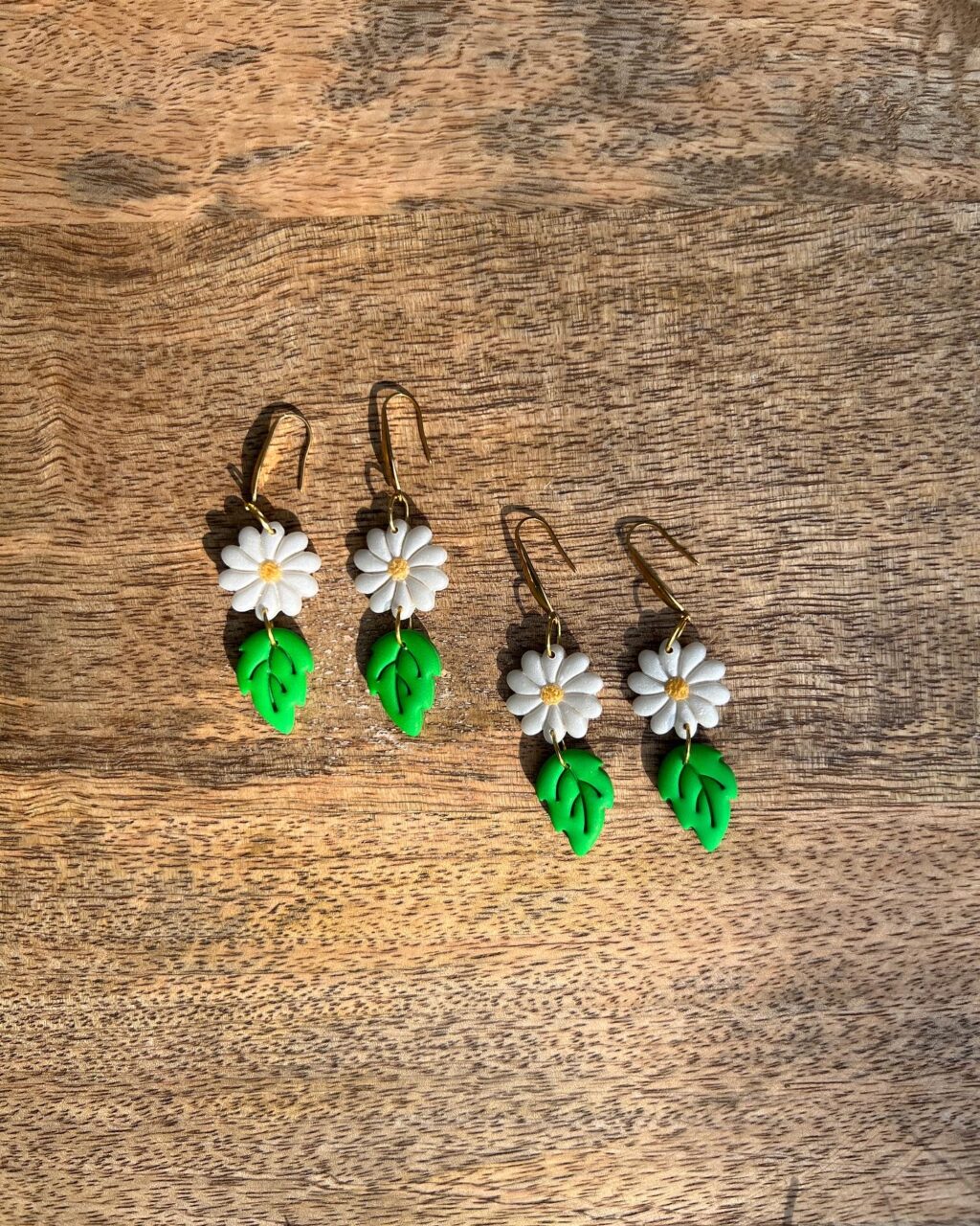 Náušničky z polymerové hmoty. Háčky jsou z pozlacené chirurgické ocele, vhodné i pro alergiky.
