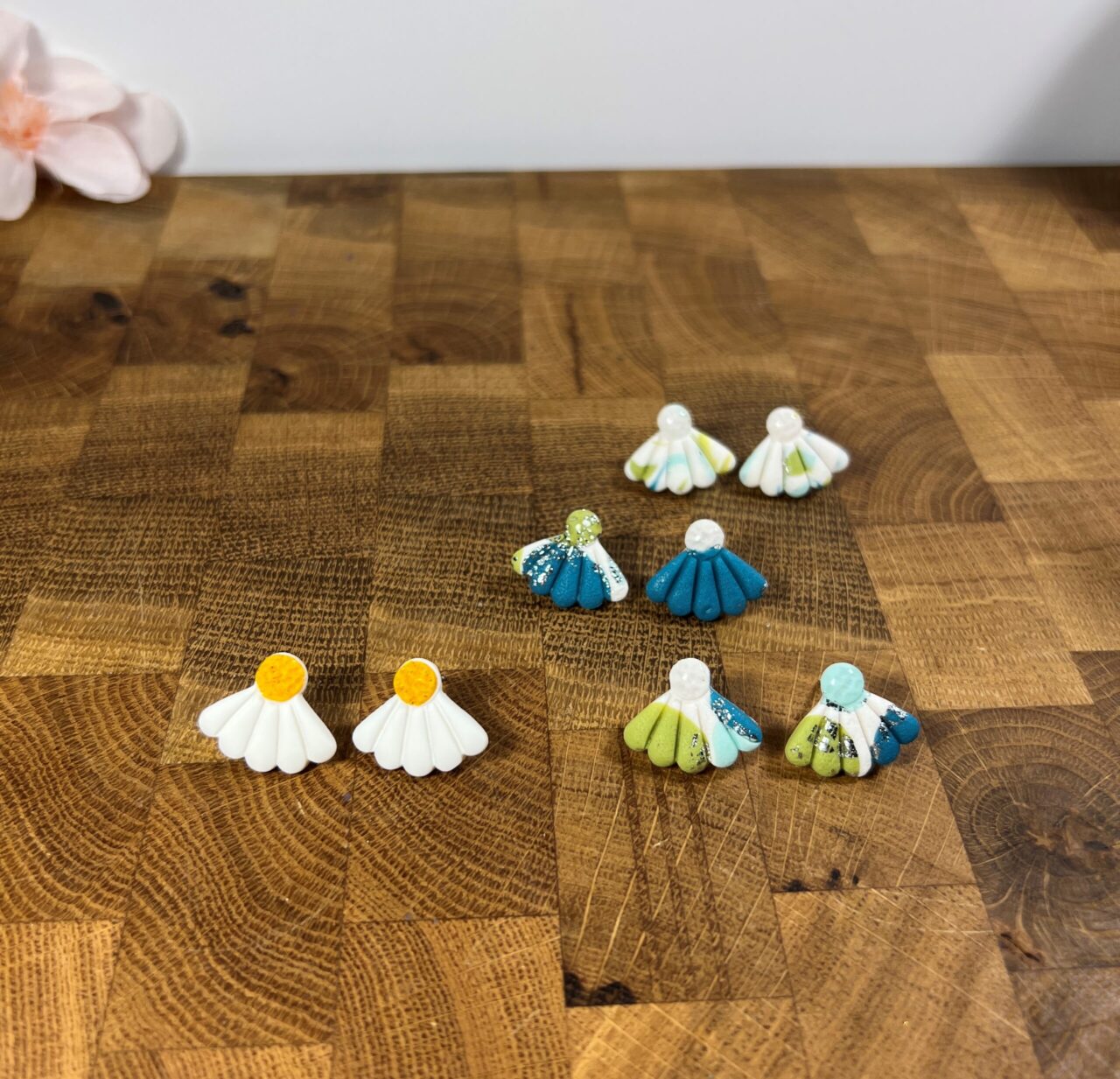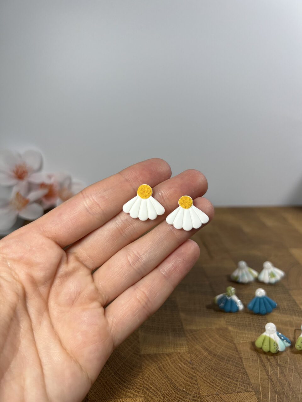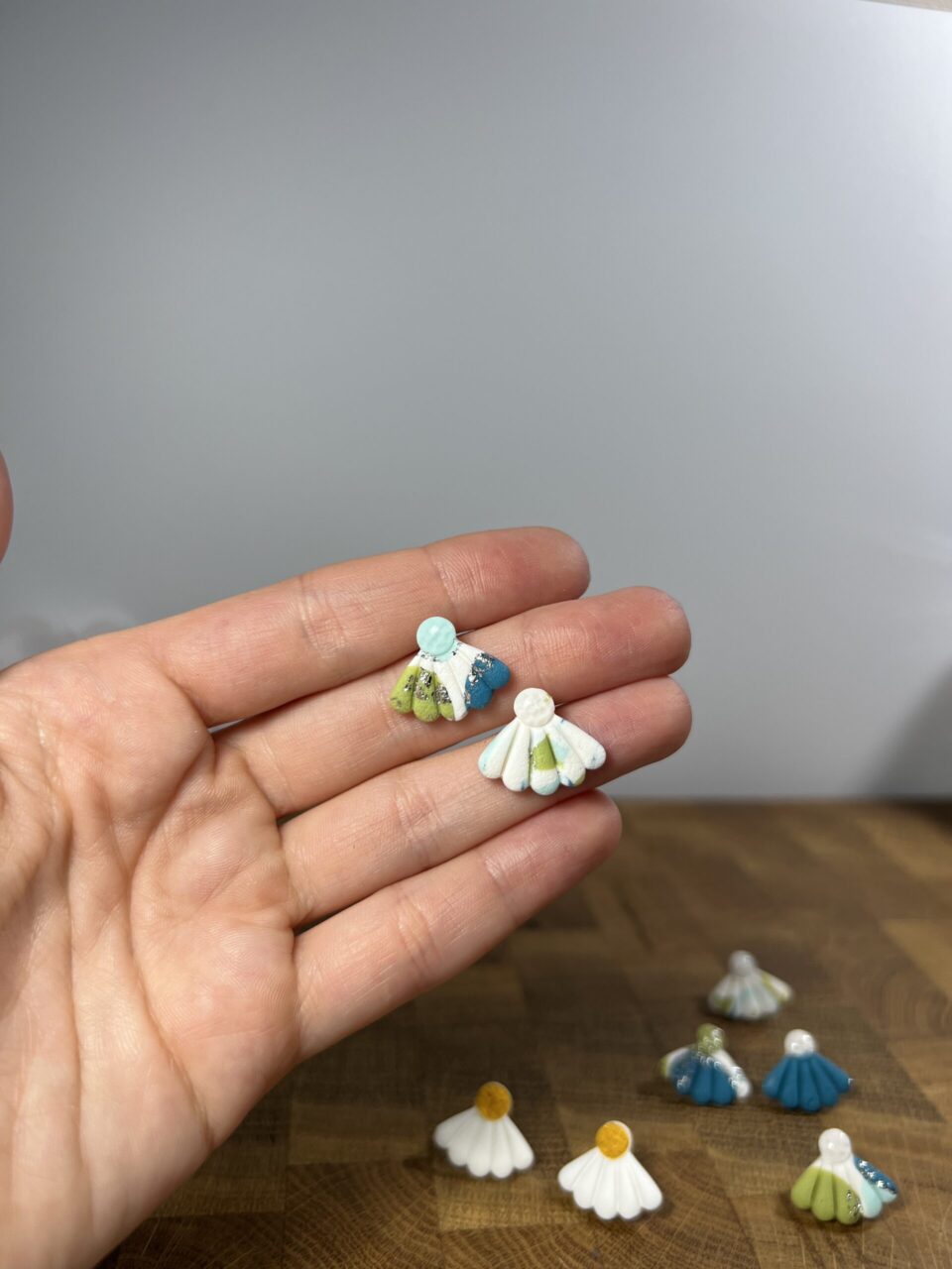 Ručně vyrobené polymerové náušnice.