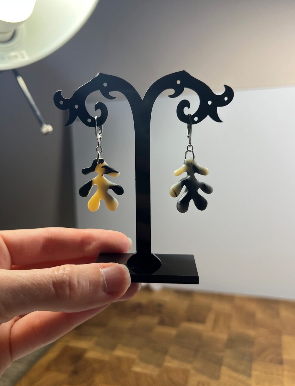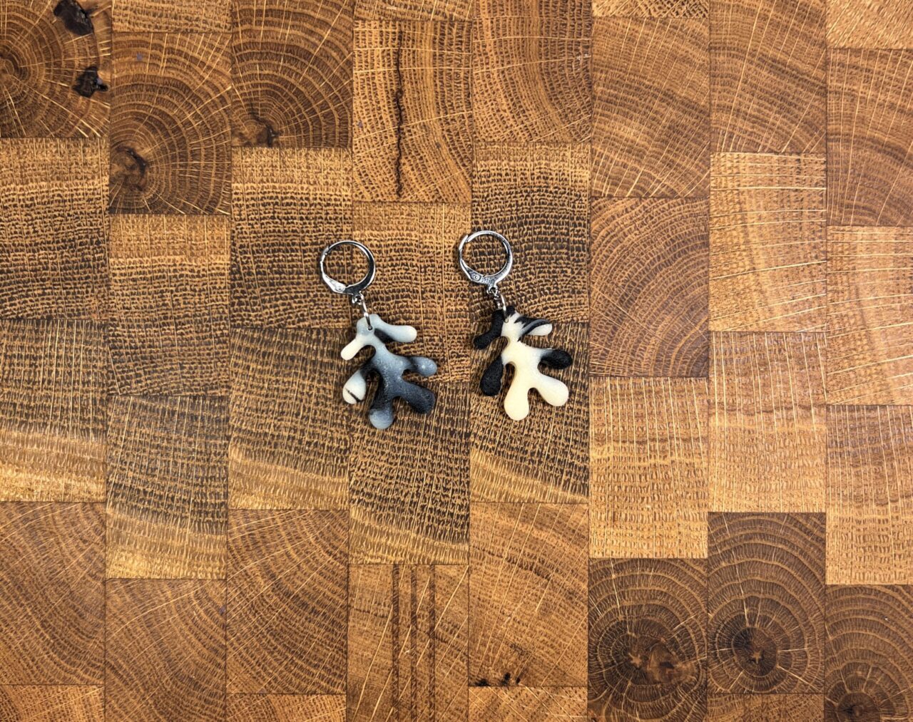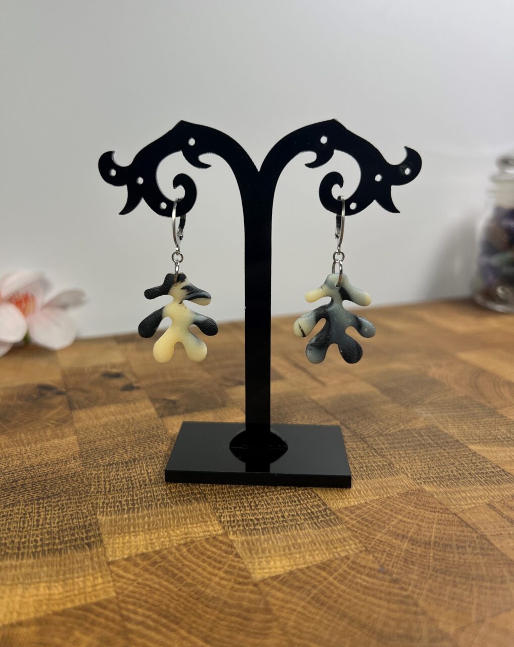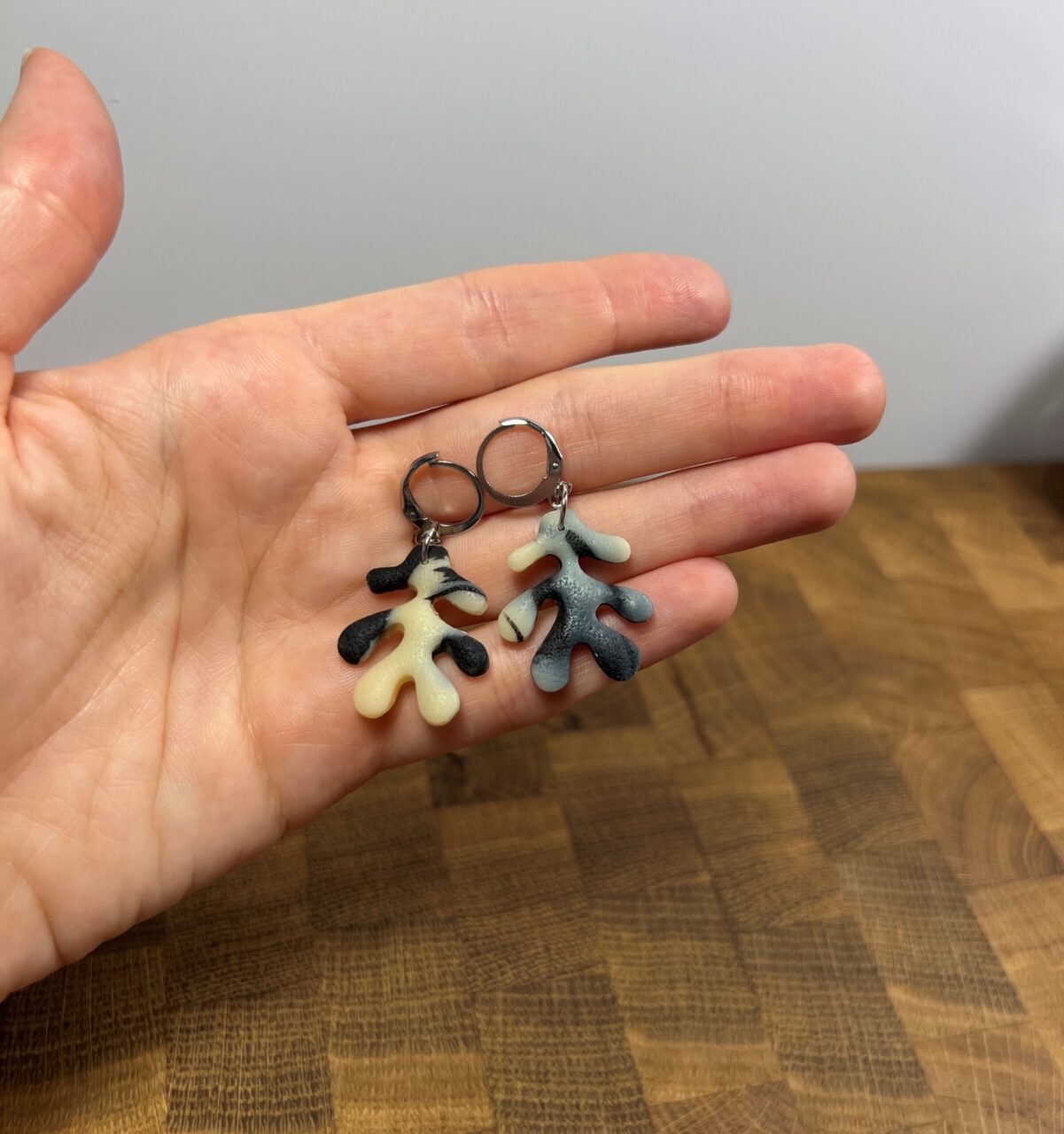 Ručně vyrobené polymerové náušnice.