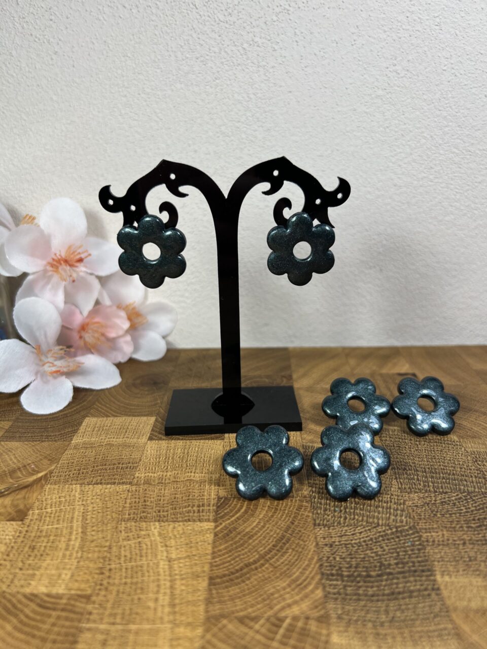Náušničky ve tvaru kytičky s puzetkou z chirurgické ocele.