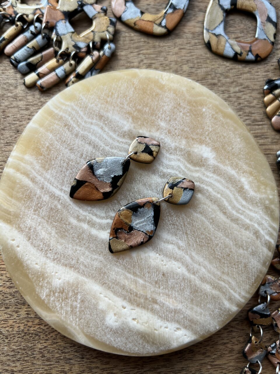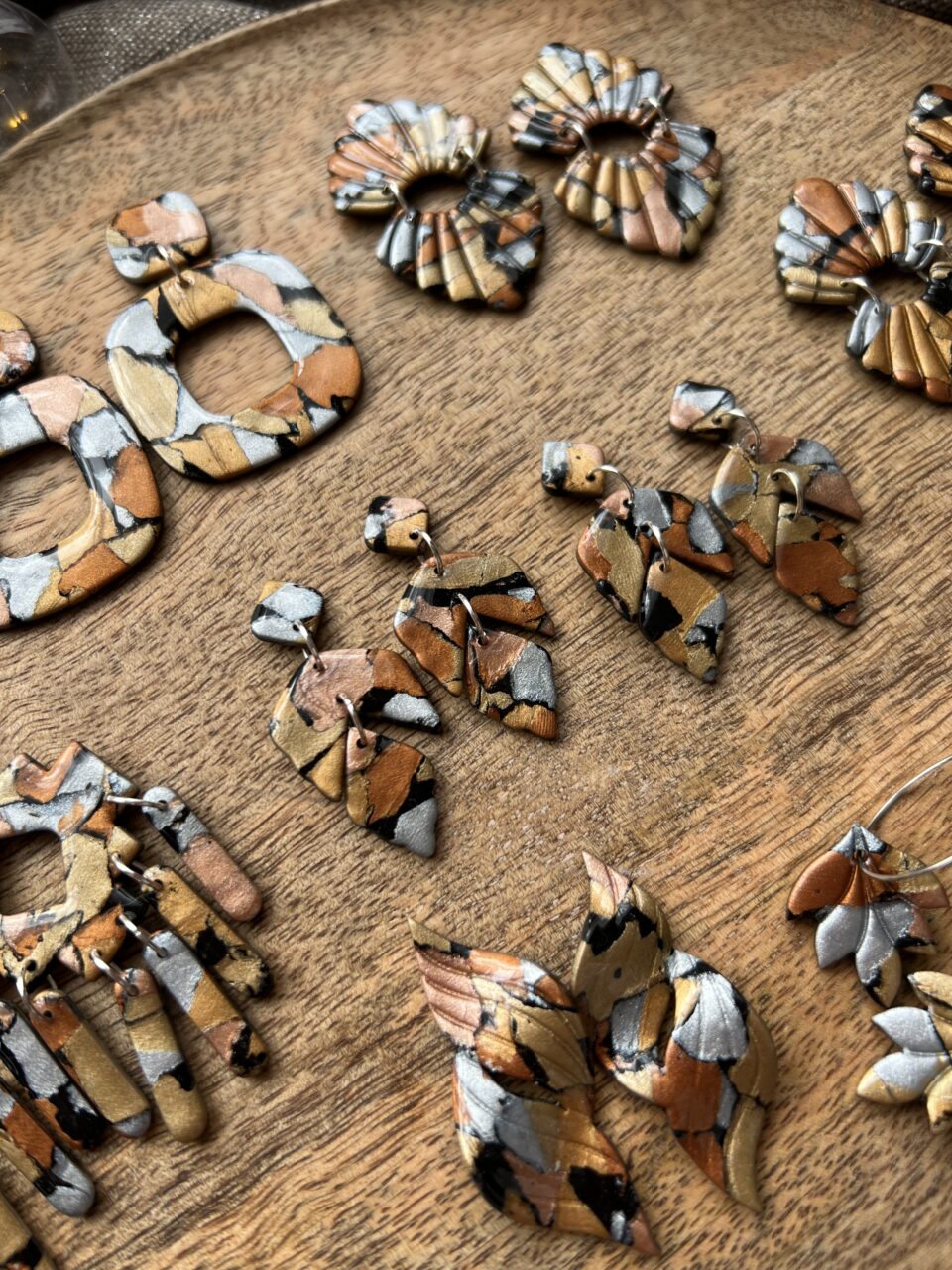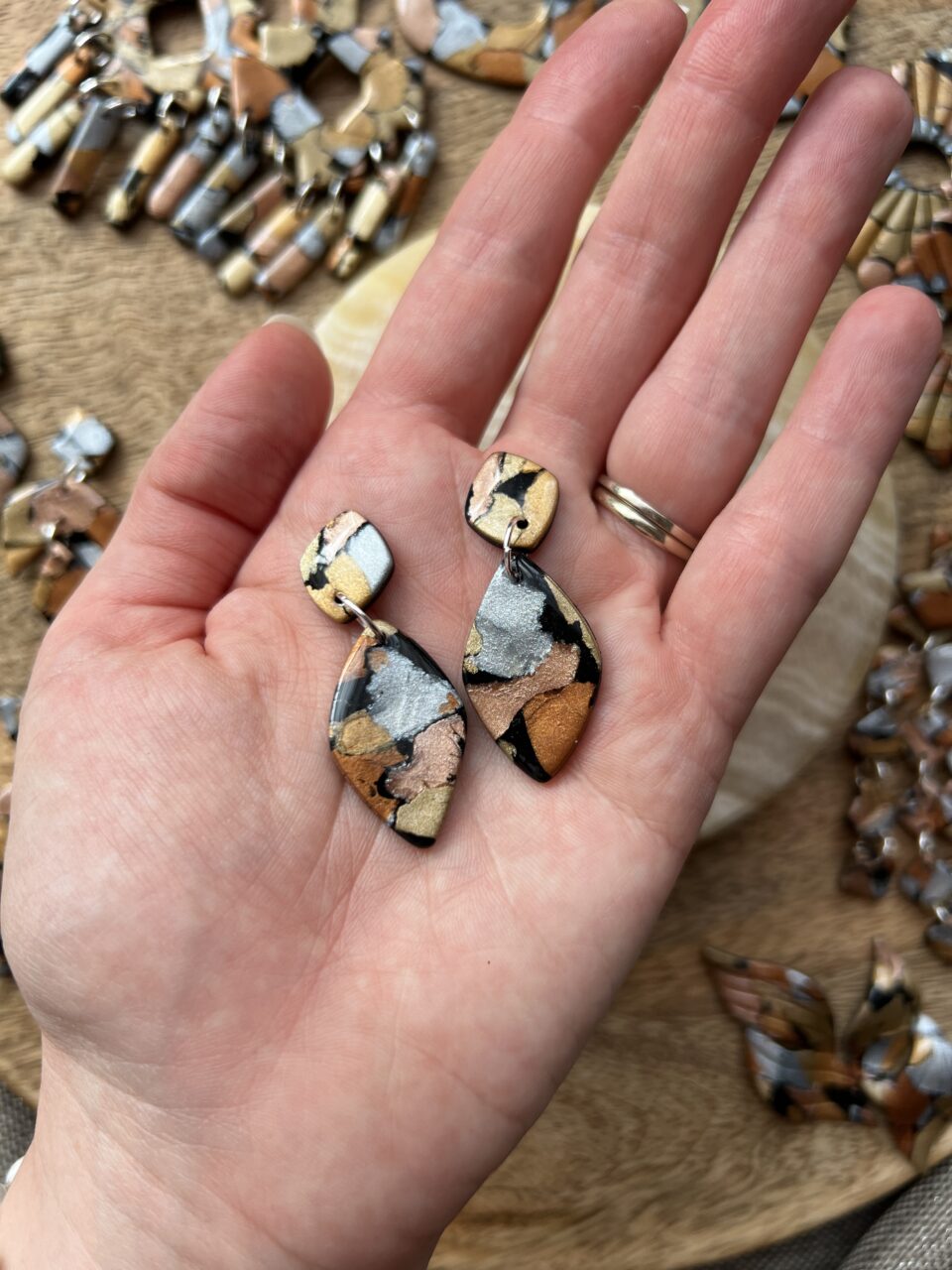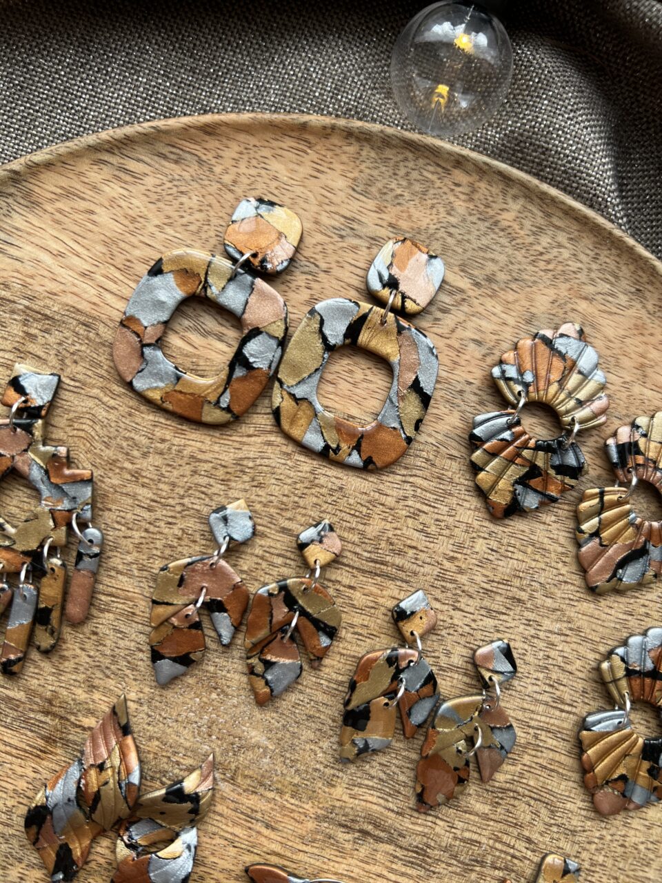 Ručně vyrobené polymerové náušnice.