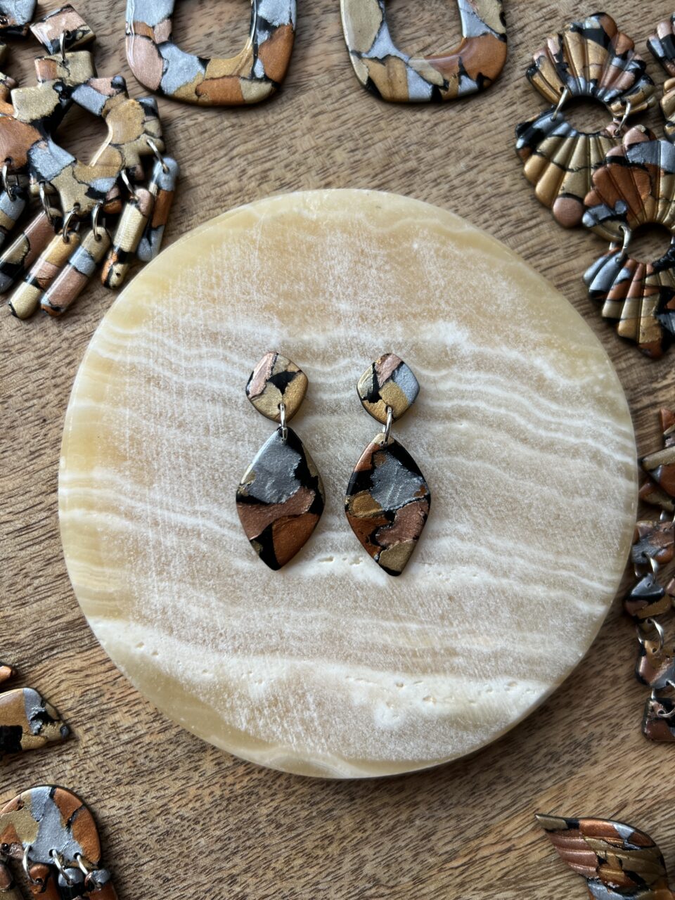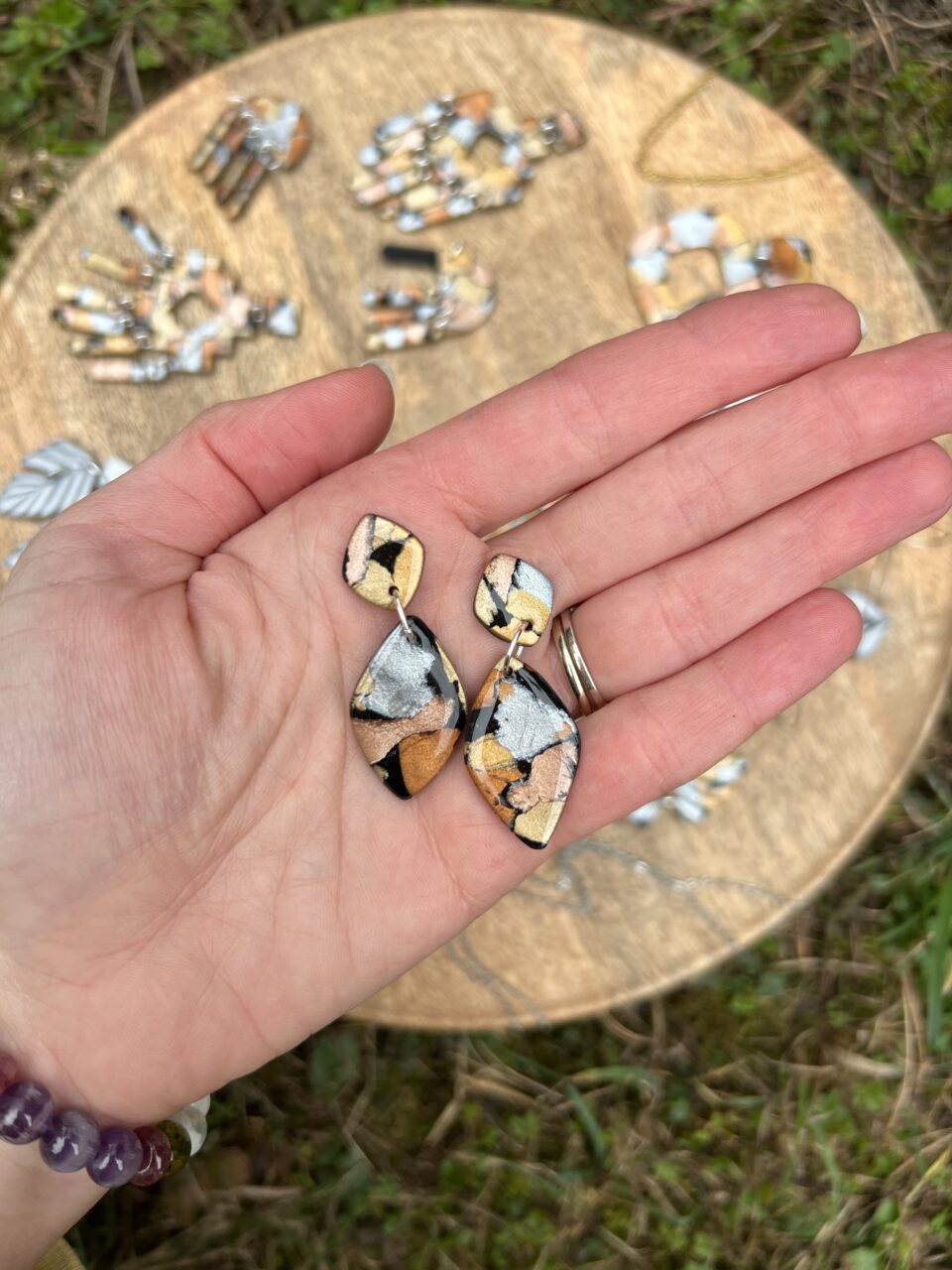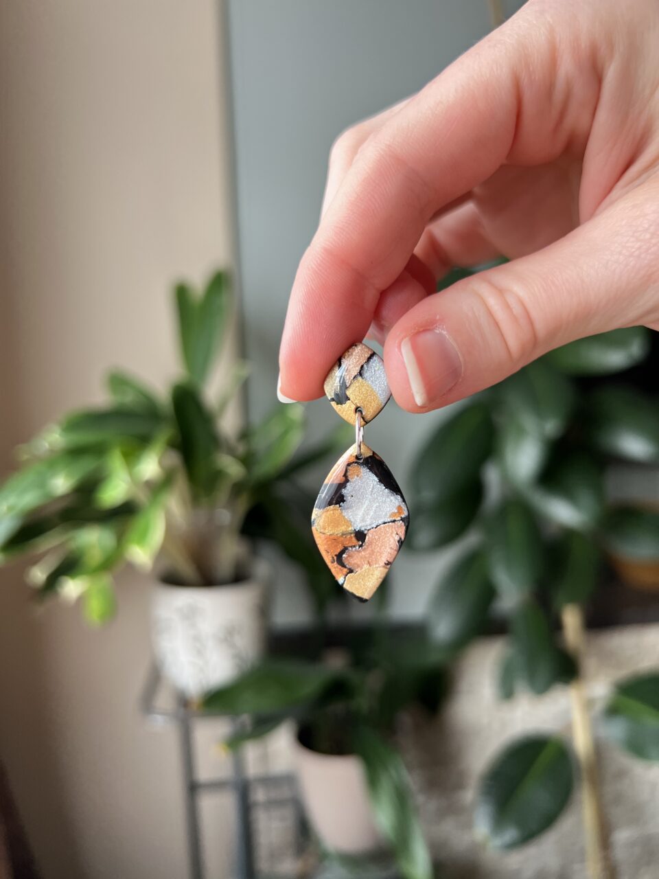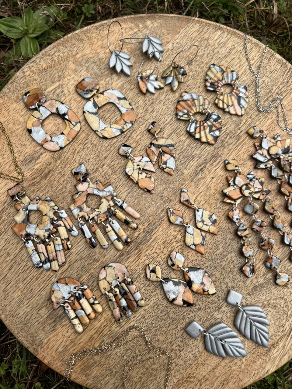 Ručně vyrobené polymerové náušnice.