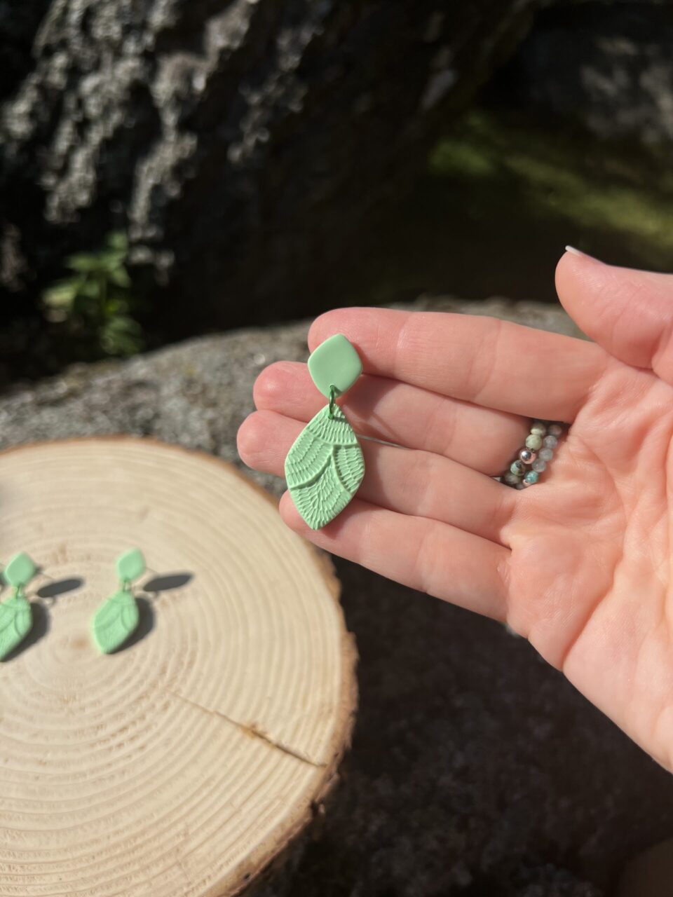 Ručně vyrobené polymerové náušnice.