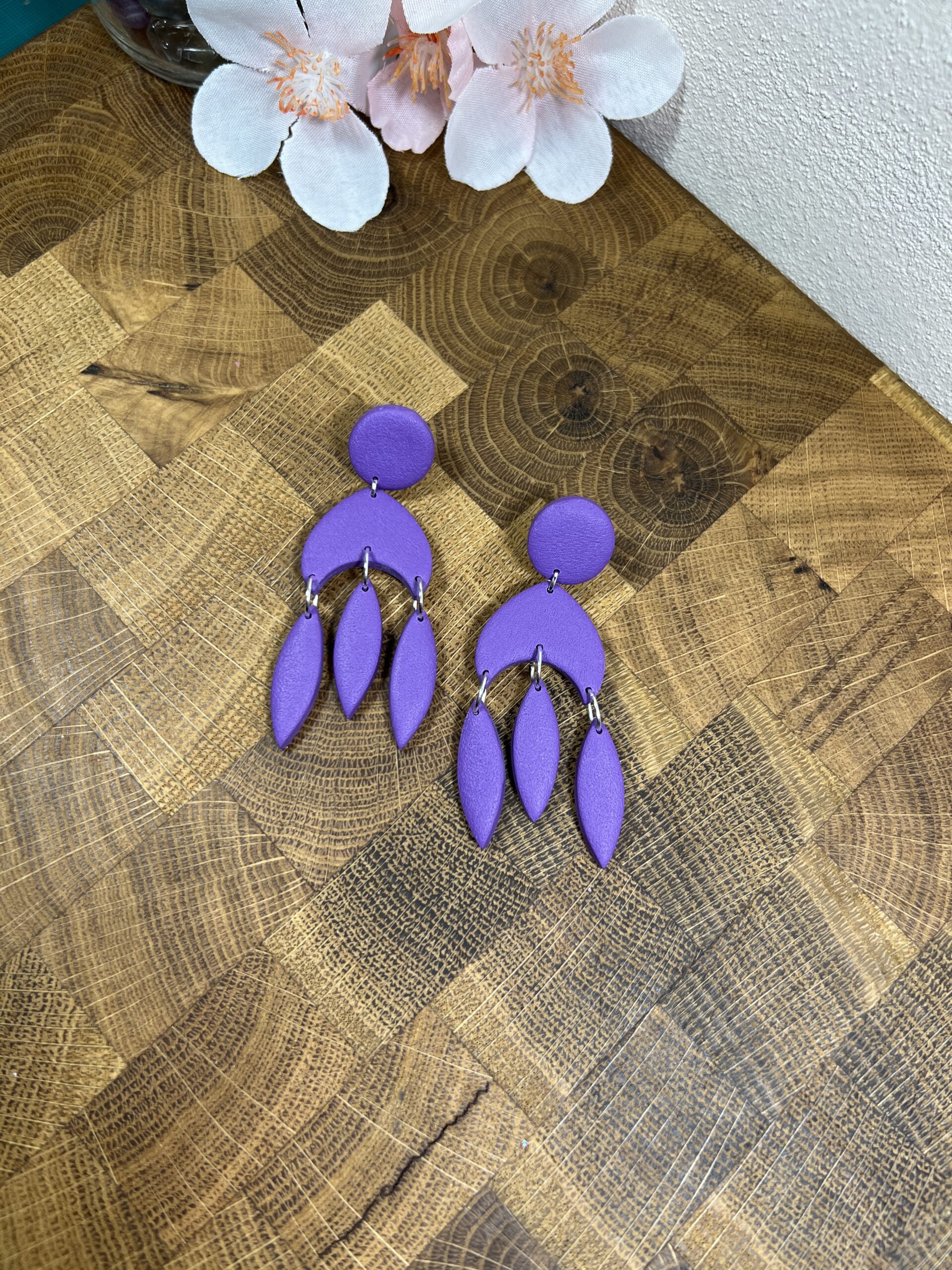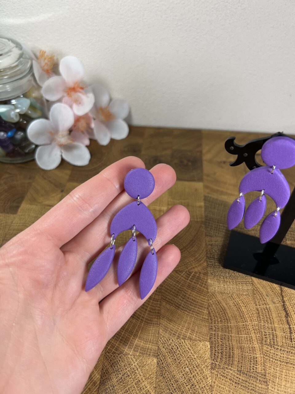 Ručně vyrobené polymerové náušnice.