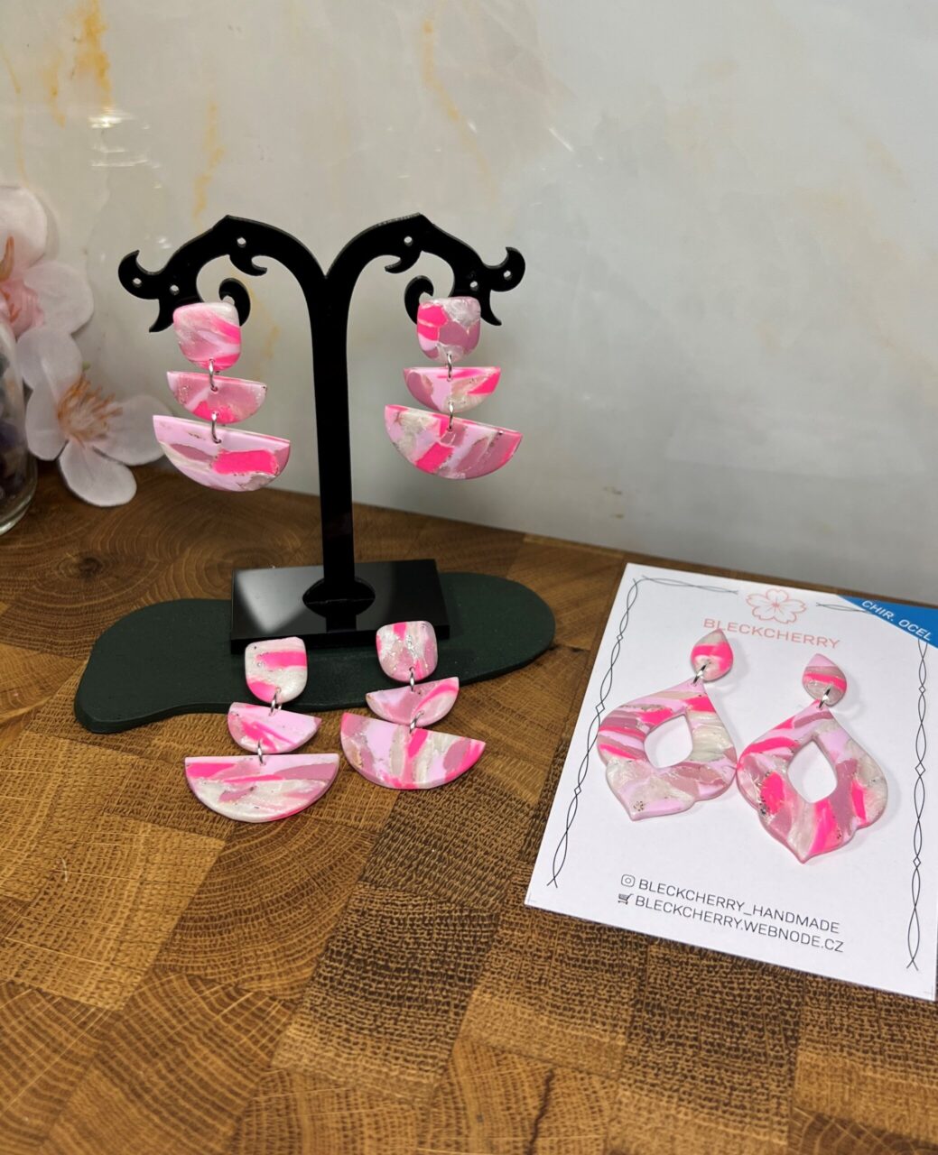 Ručně vyrobené polymerové náušnice.