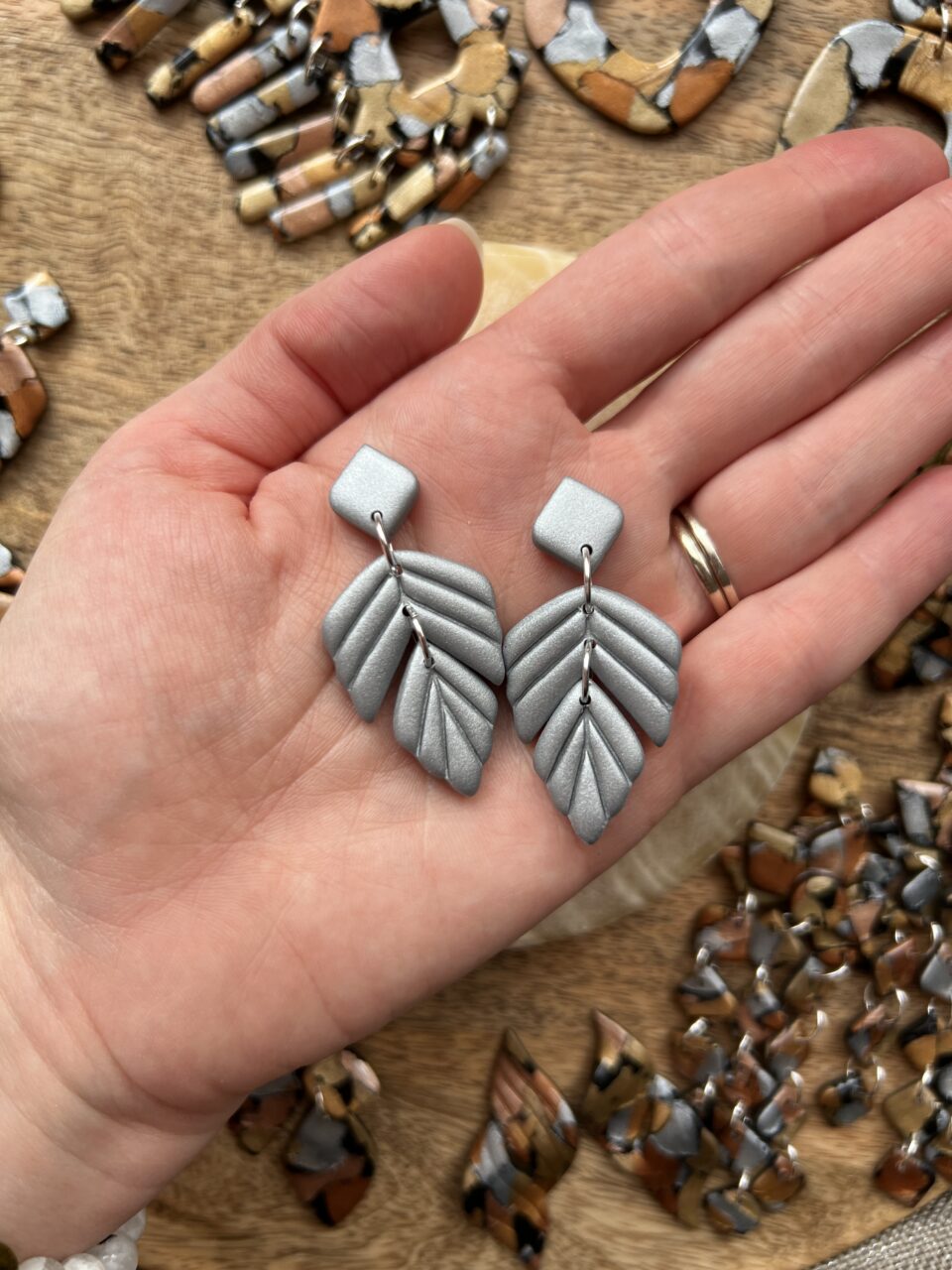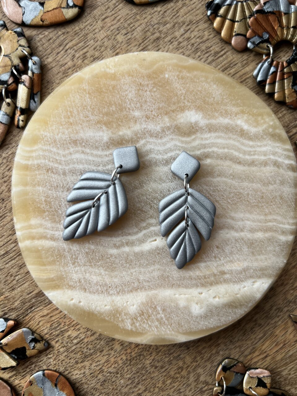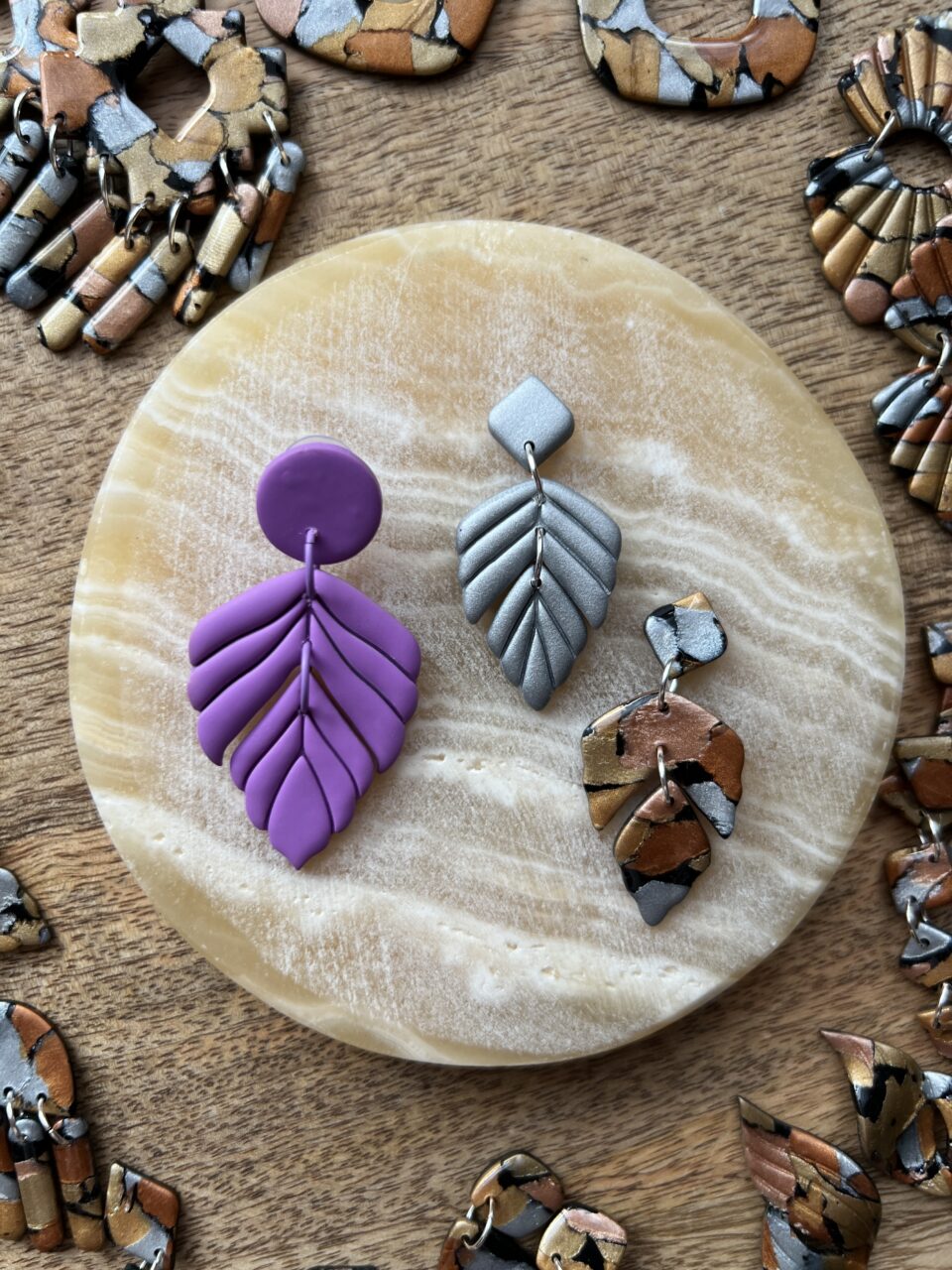 Ručně vyrobené polymerové náušnice.
