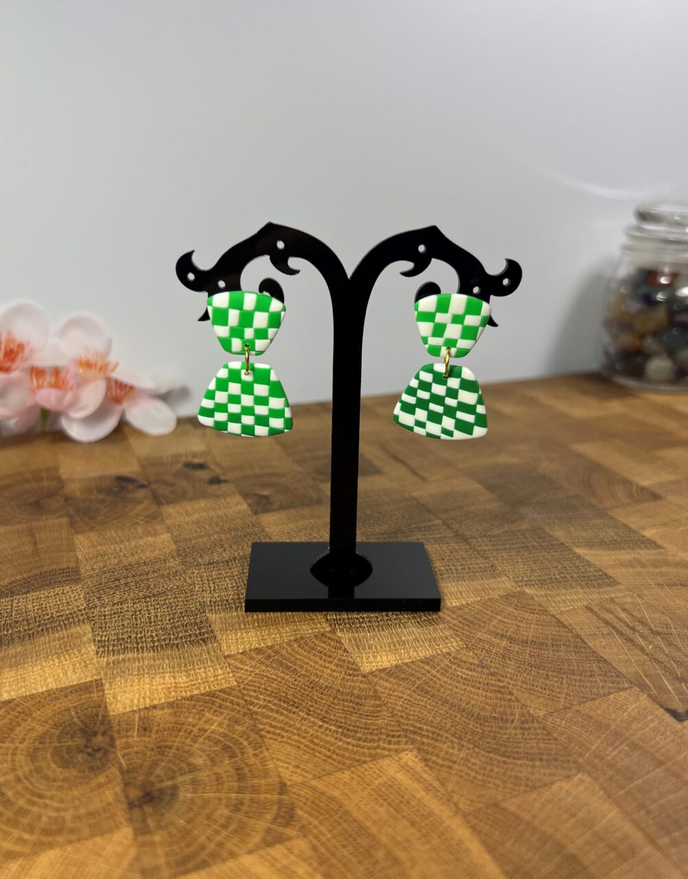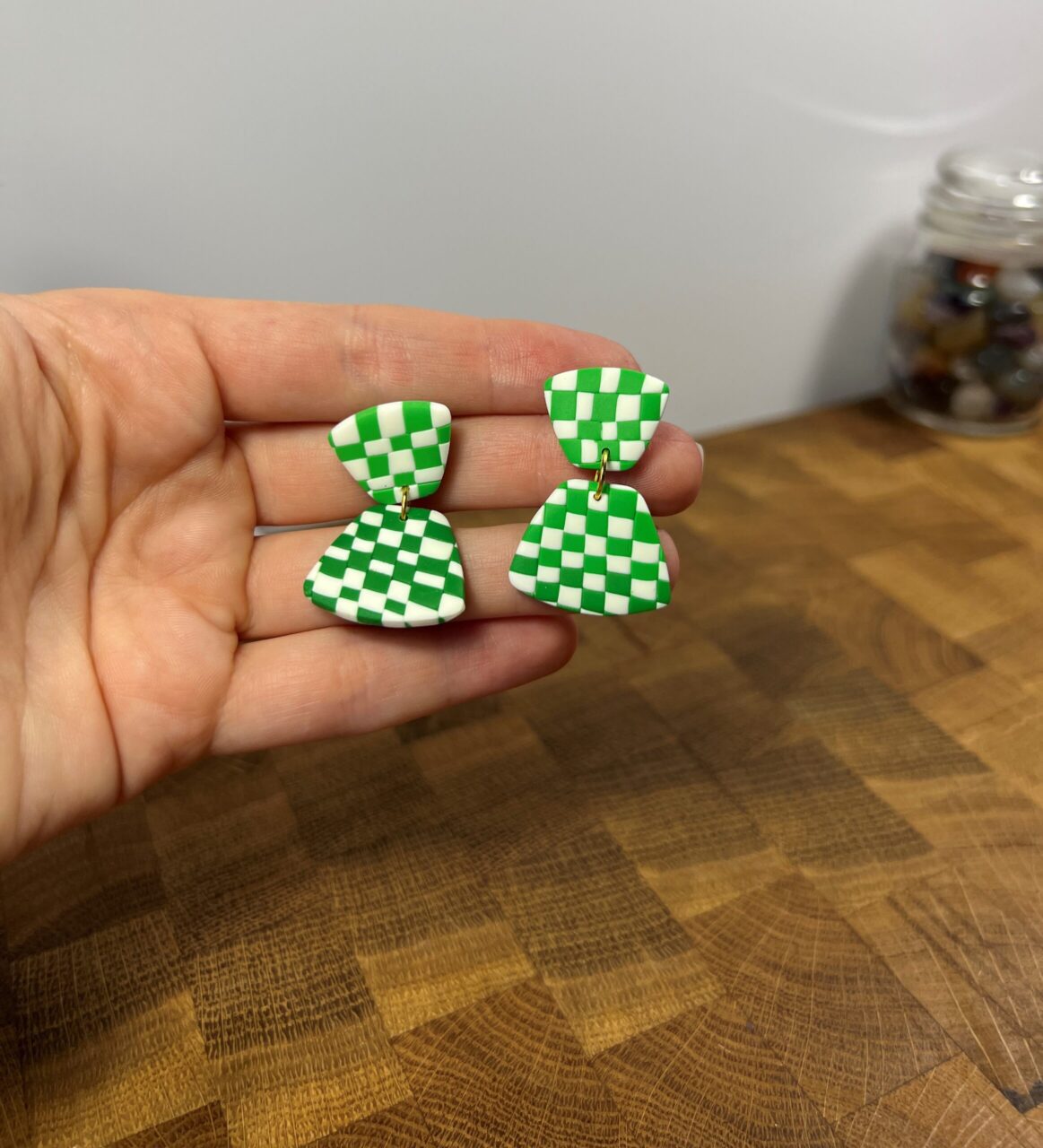 Ručně vyrobené polymerové náušnice.