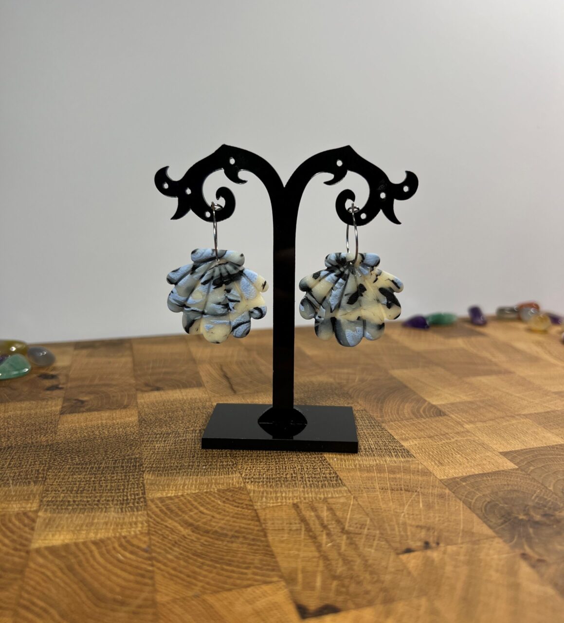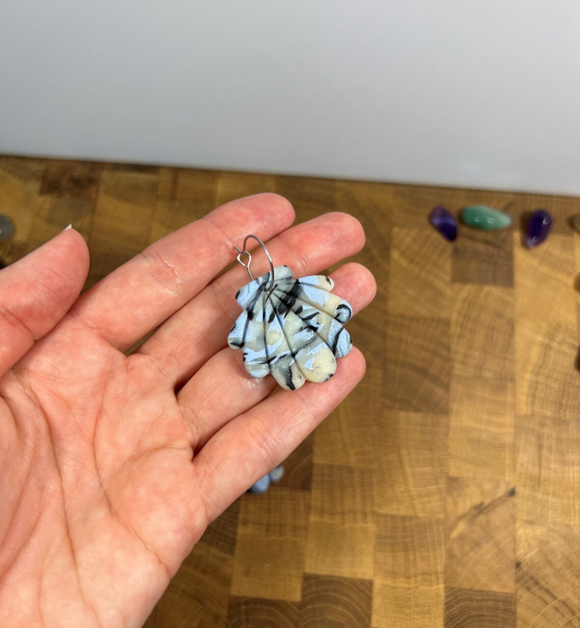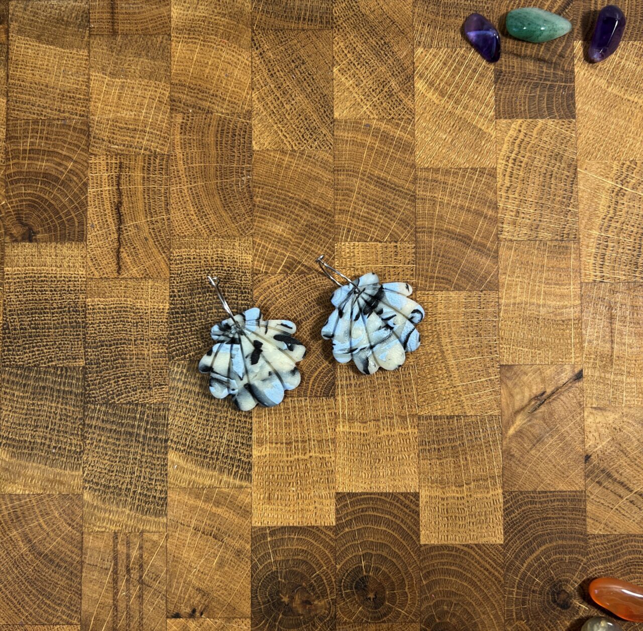 Ručně vyrobené polymerové náušnice.