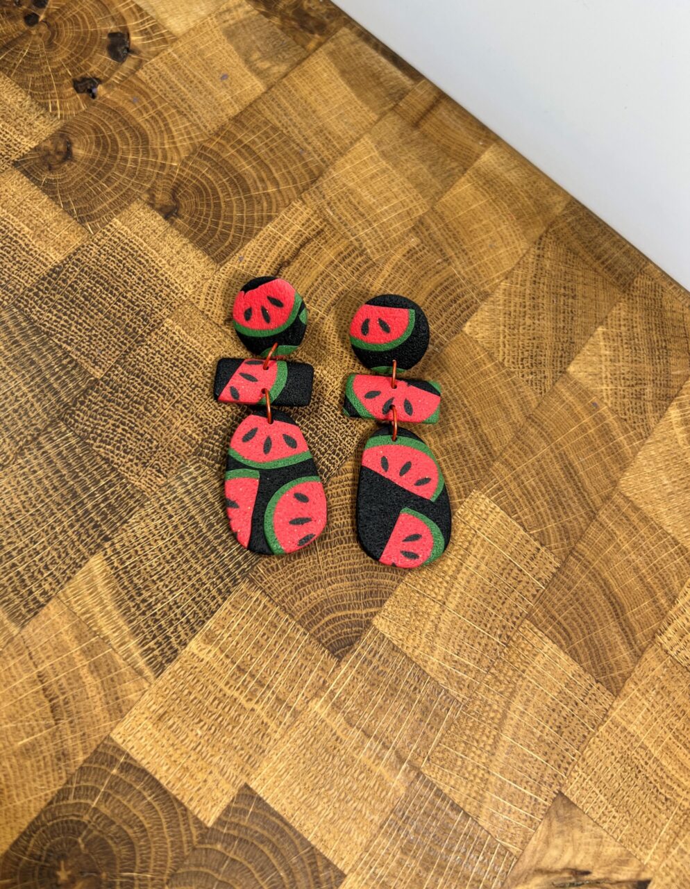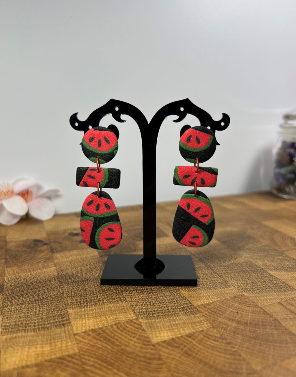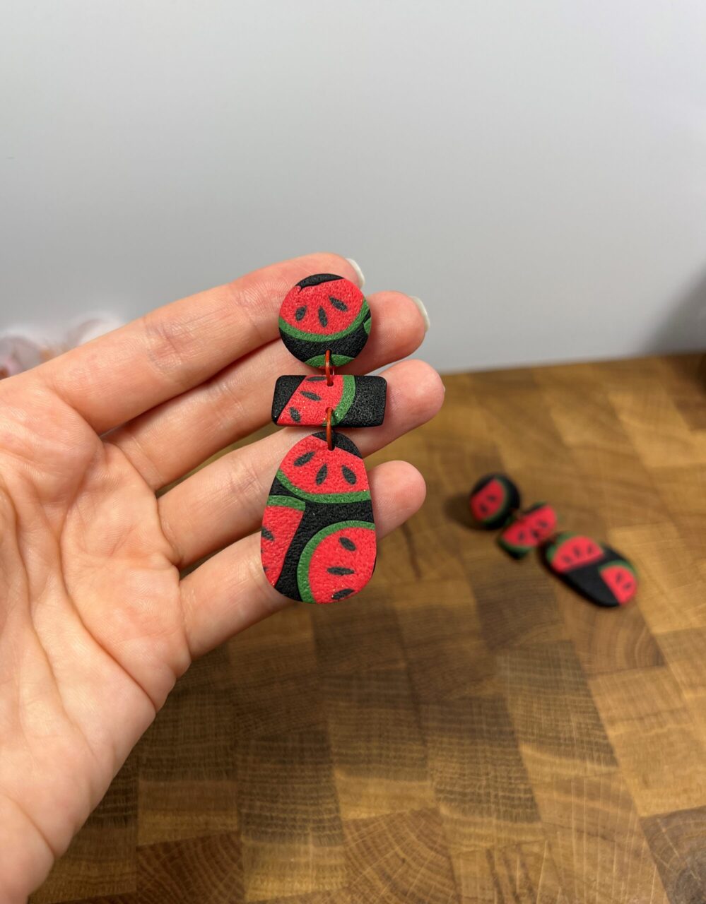 Ručně vyrobené polymerové náušnice.