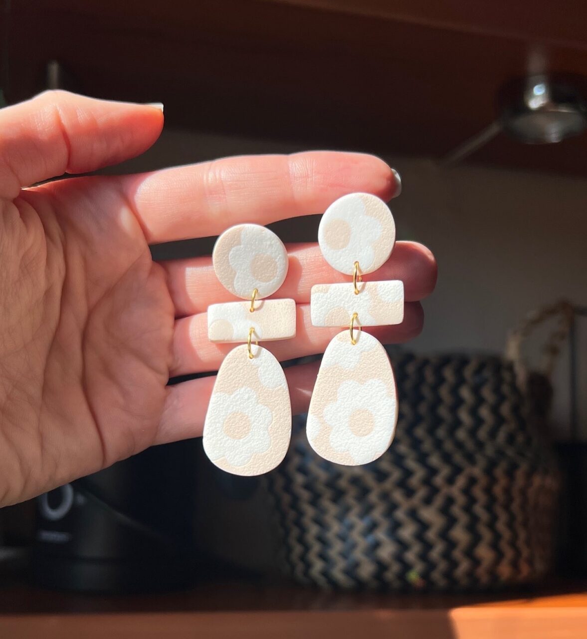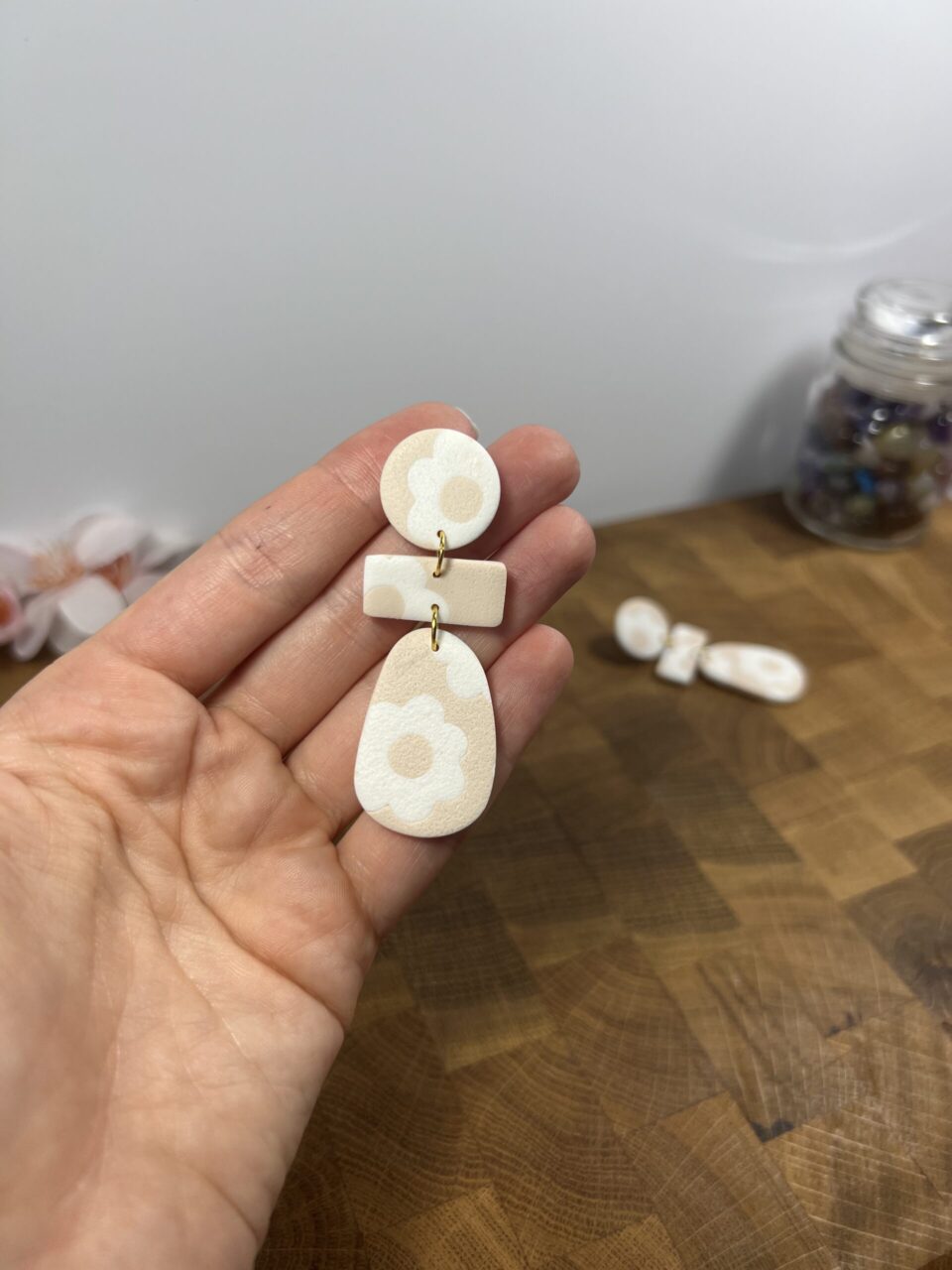 Ručně vyrobené polymerové náušnice.