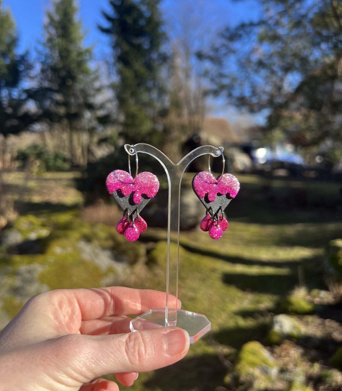 Ručně vyrobené polymerové náušnice.