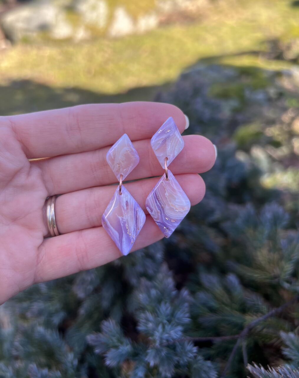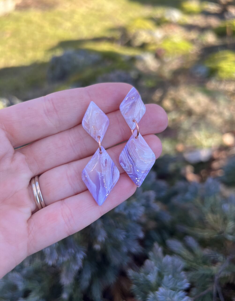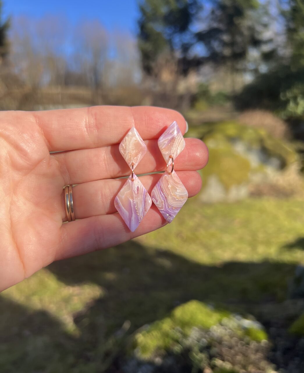 Ručně vyrobené polymerové náušnice.