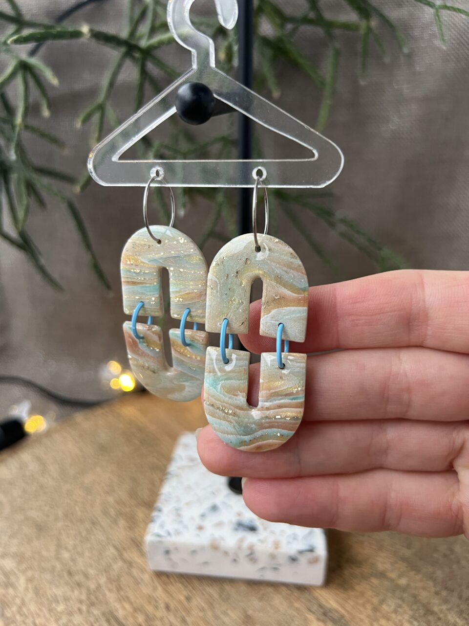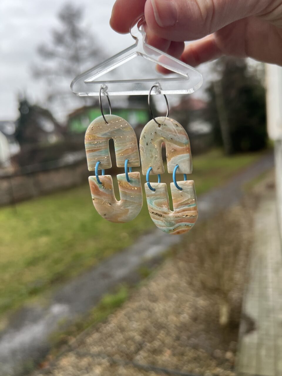 Ručně vyrobené polymerové náušnice.