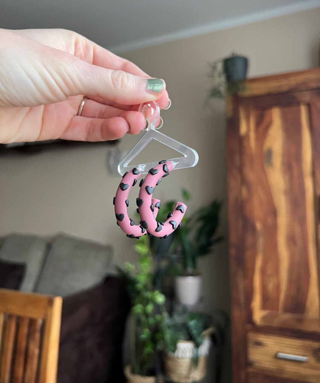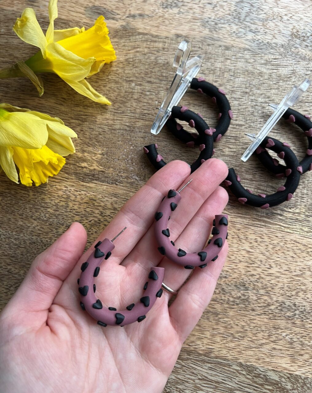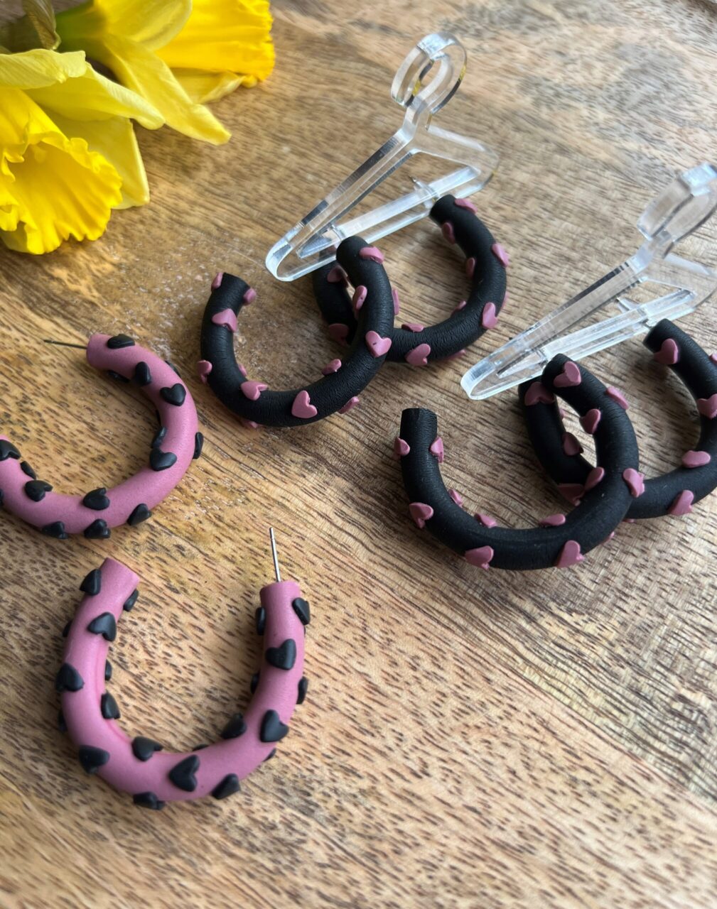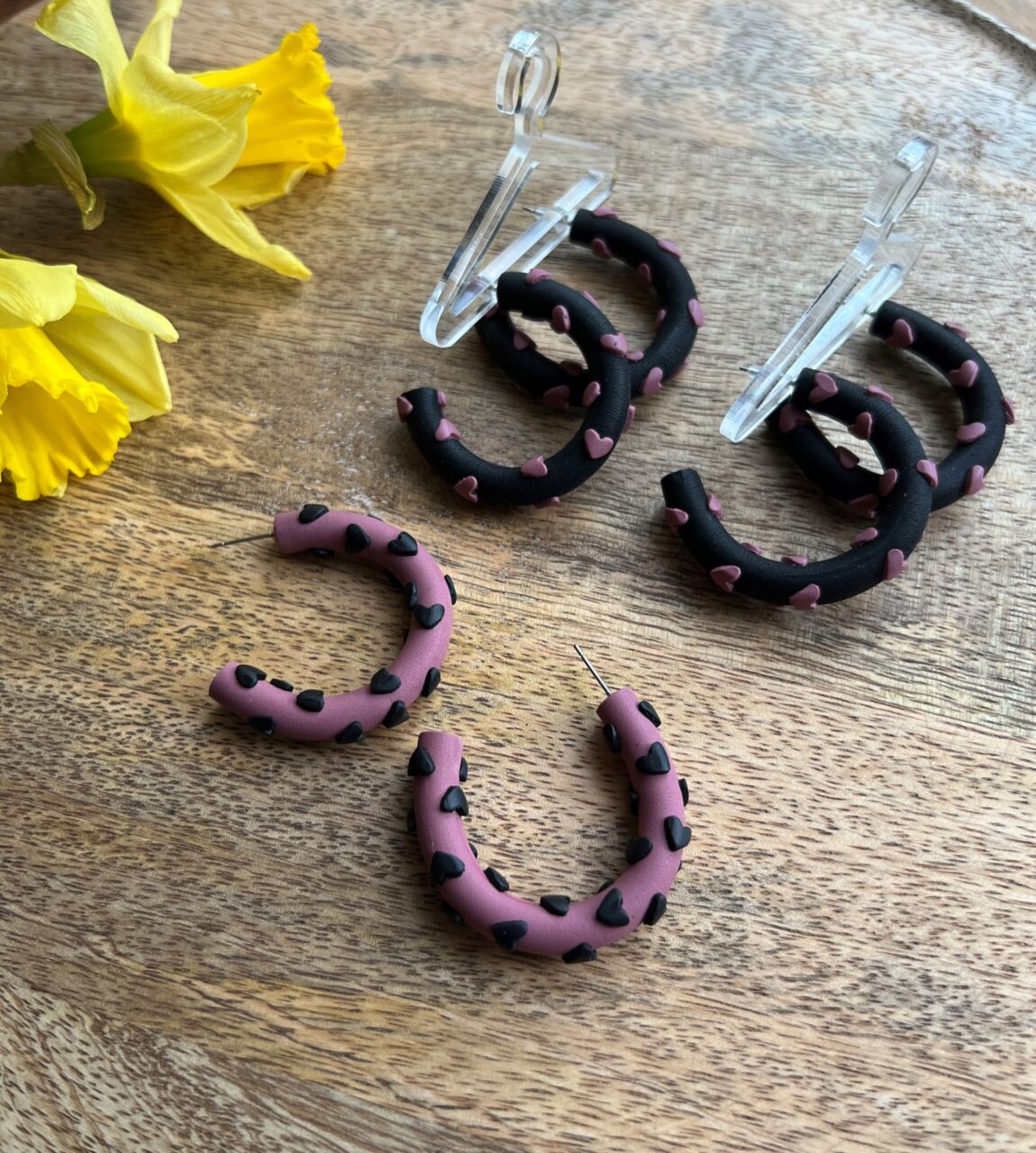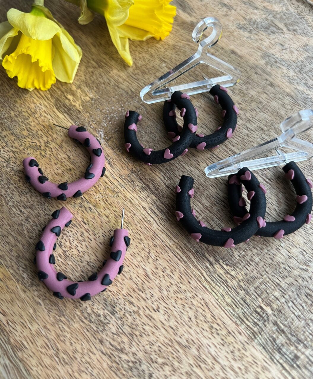 Ručně vyrobené polymerové náušnice.
