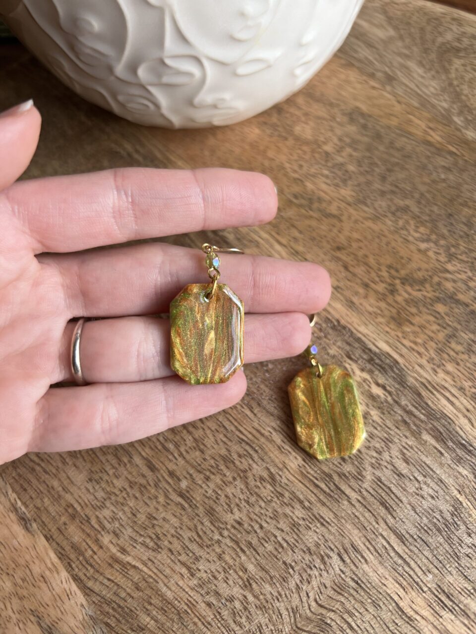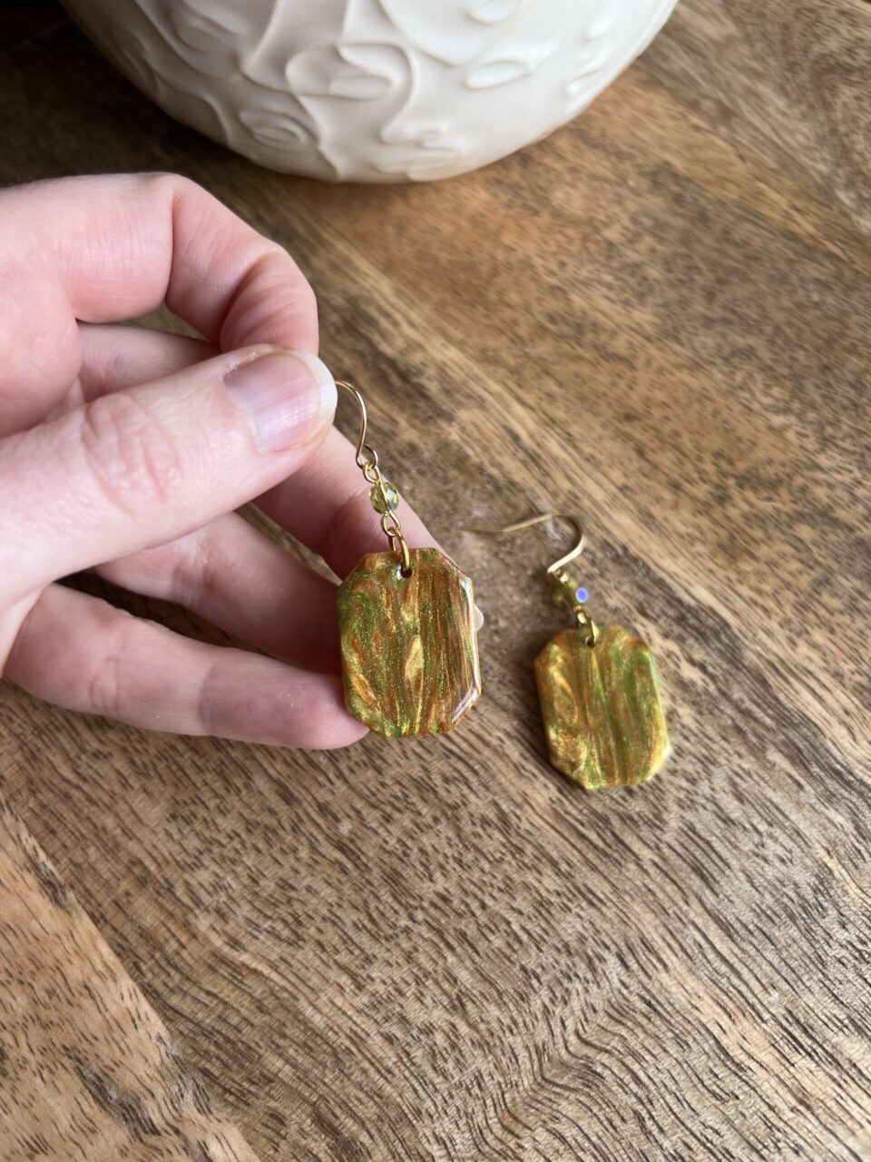 Ručně vyrobené polymerové náušnice.