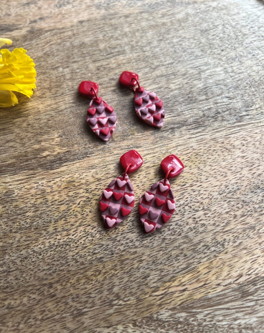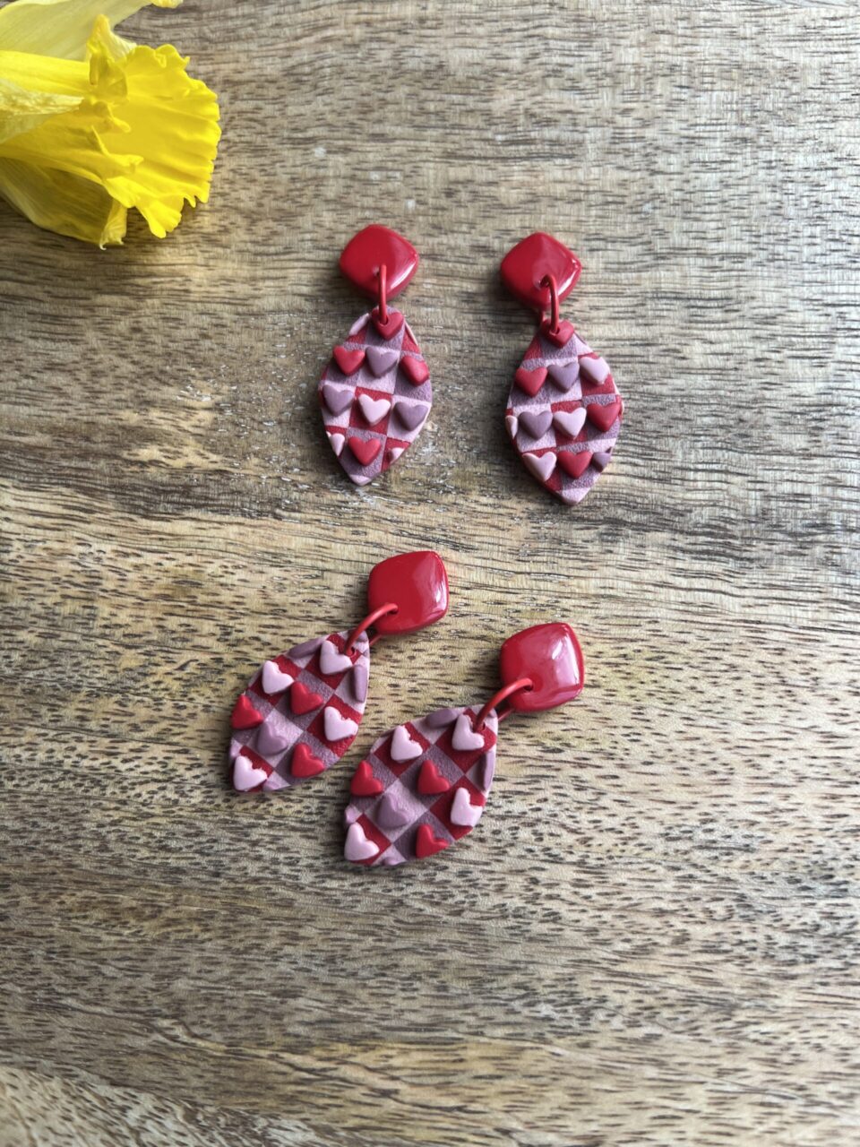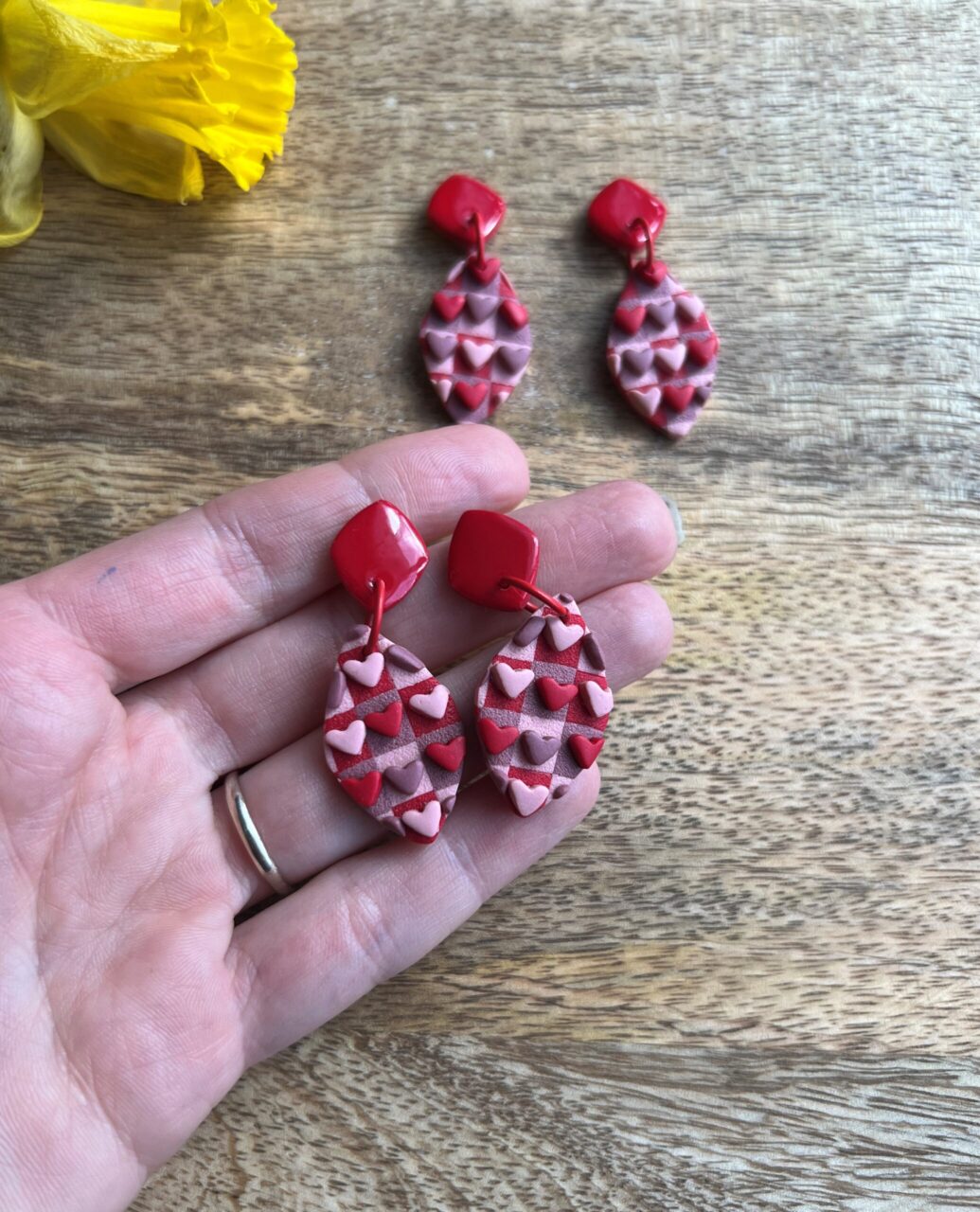 Ručně vyrobené polymerové náušnice.