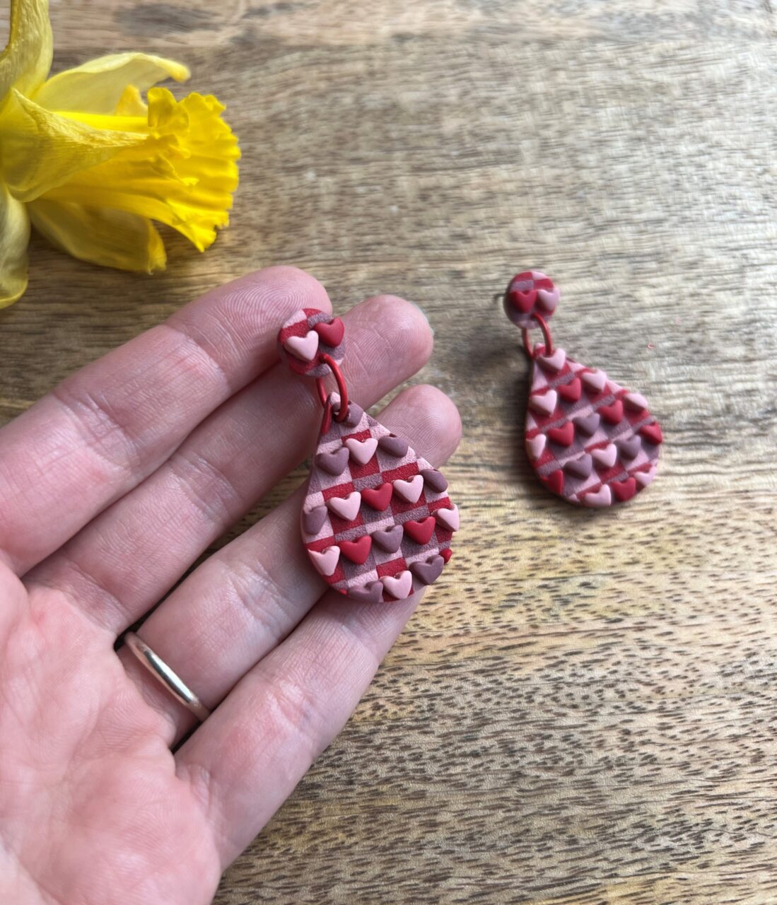 Ručně vyrobené polymerové náušnice.