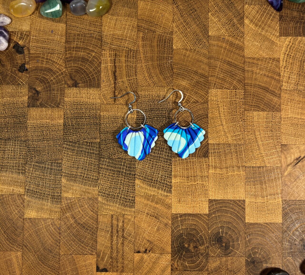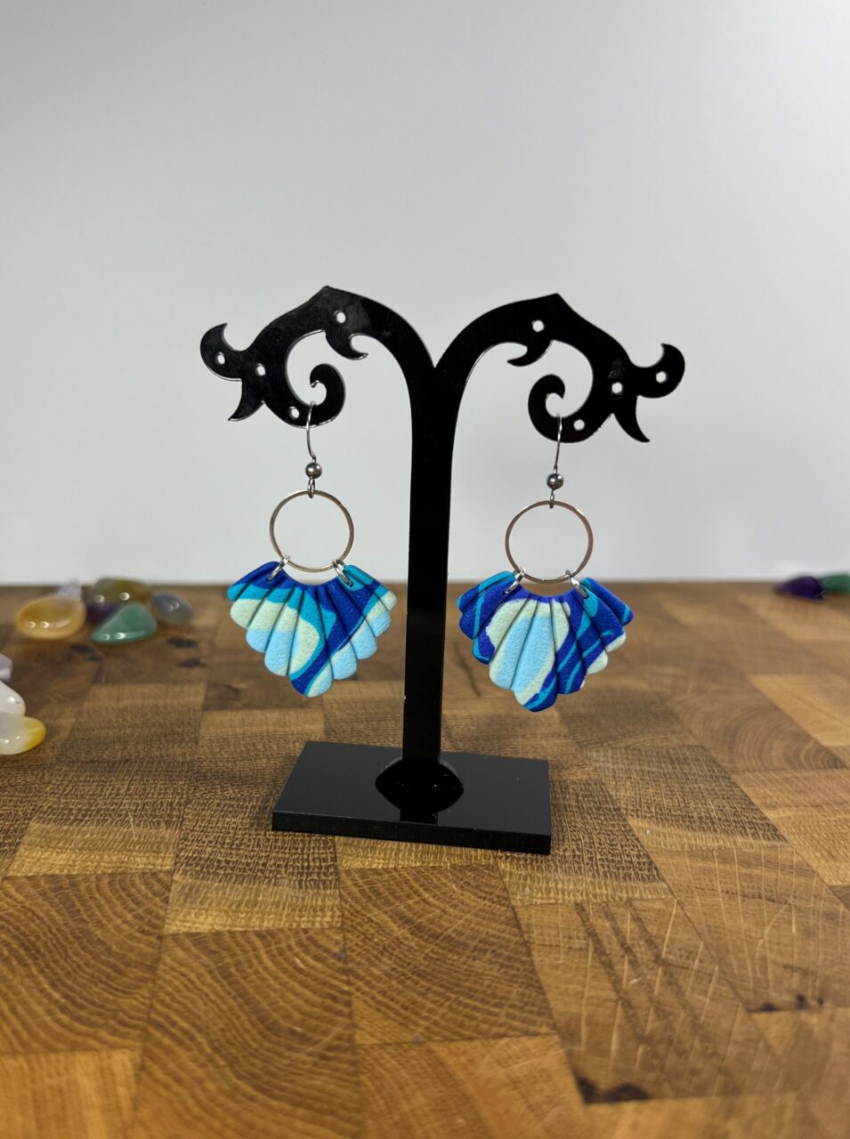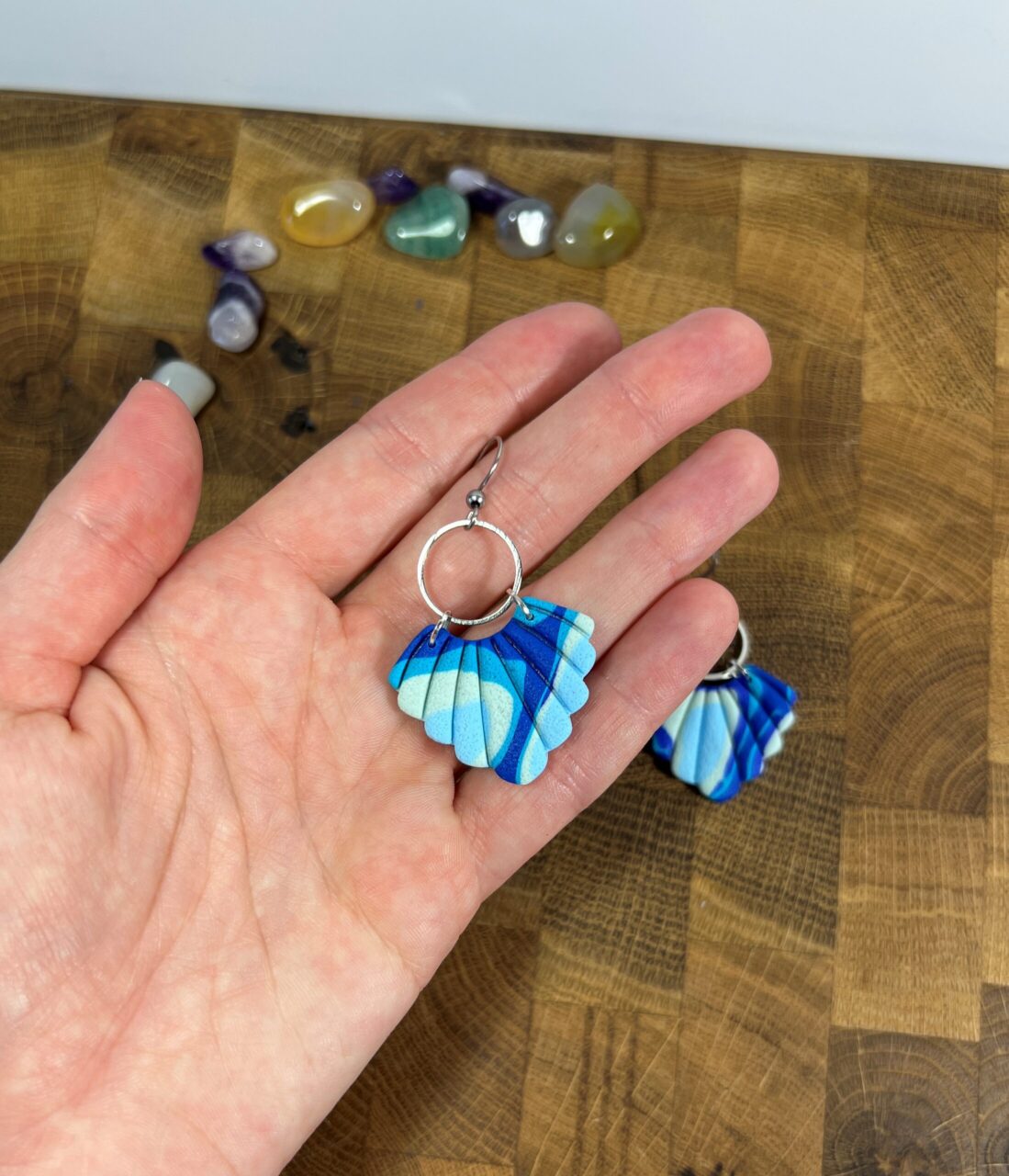 Ručně vyrobené polymerové náušnice.