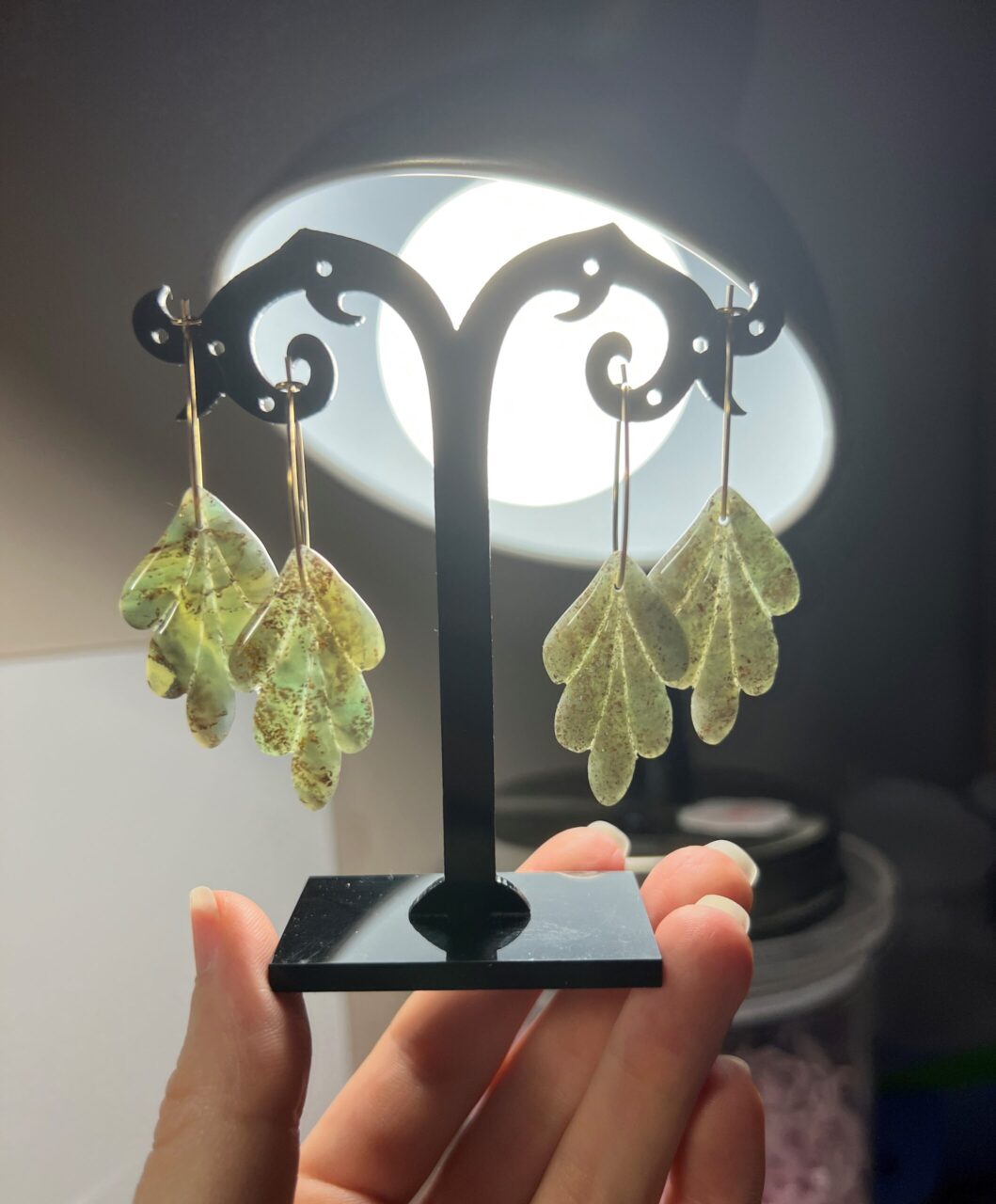 Ručně vyrobené polymerové náušnice.